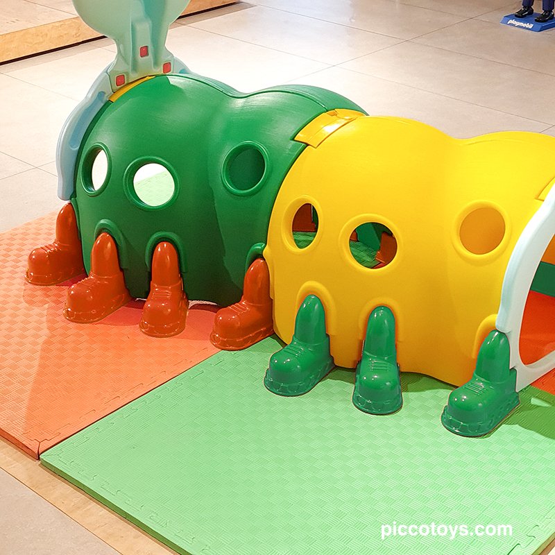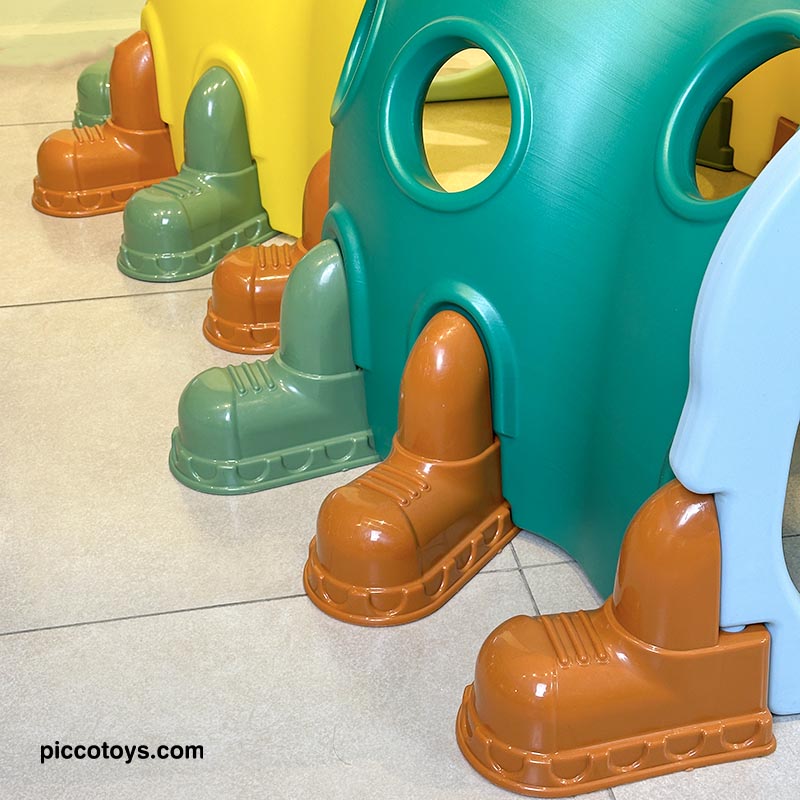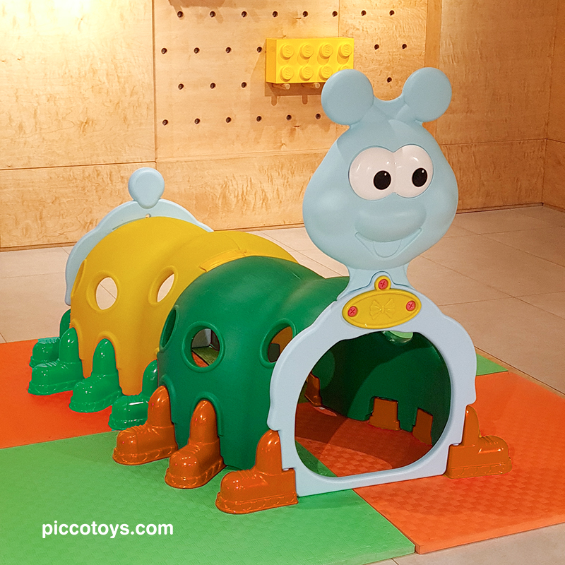 تونلی زیبا با بدنه سبز زرد که از چندین بند تشکیل شده است ,جنس این تونل از پلاستیک نشکن می باشد که استقامت آن را در برابر وزن کودک بالا می برد . طول اين تونل 140 سانتی متر و عرض آن 100سانتی متر است. رنگ کفش های تونل هزارپا رندوم می باشد.