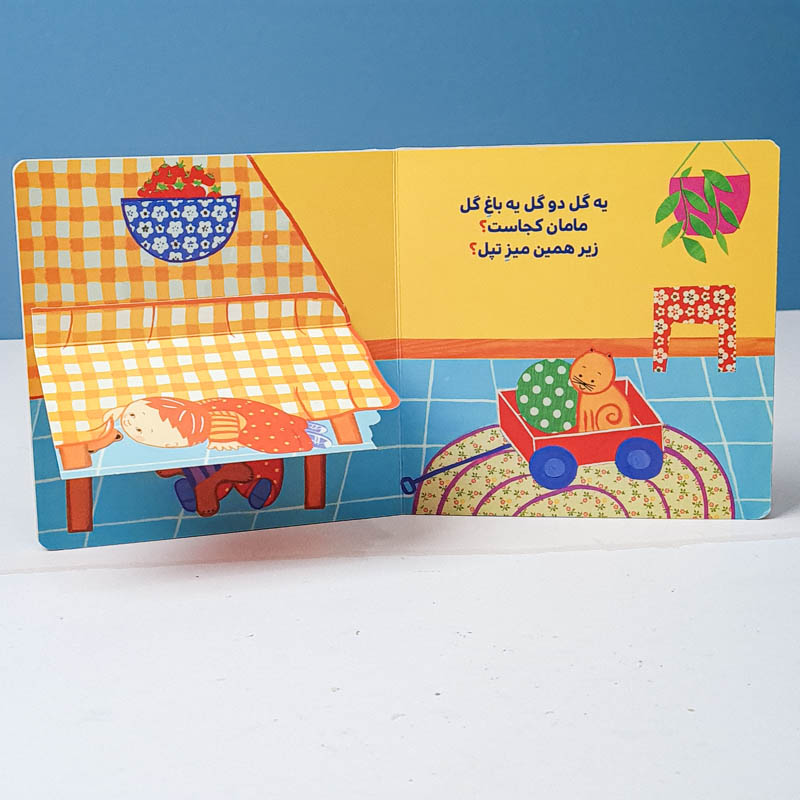 نینی داره با مامانش قایم باشک بازی میکنه! شما و کودکتون هم میتوانید در بازی اونها شرکت کنین و همزمان، اسم بعضی اشیای خانه رو هم با هم تمرین کنین.