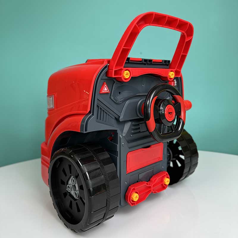 این اسباب بازی کامیون 61 تکه داره که شامل 1 عدد ریموت، 1 عدد آچار، 1 عدد پیچ گوشتی و 28 عدد پیچ ، 4 عدد شمع ماشین اسباب بازی ، چرخ و رینگ و ... هست که کودک می تونه شروع به تعمیر و مونتاژ اجزای ماشین اسباب بازی کنه.