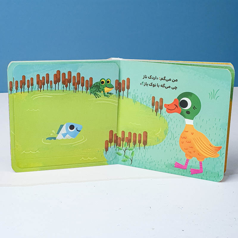کوچولوها با ورق زدن این کتاب و پیدا کردن حیوانات بامزه ،و شعرهای شیرین مجموعه کتابهای (من میگم تو میگی) عاشق این کتاب میشوند و در کنار شما لحظههای لذتبخشی را می گذرانند و همزمان کمک میکند تا با مفاهیم و کلمات جدید و همچنین با تضاد ها آشنا شوند.