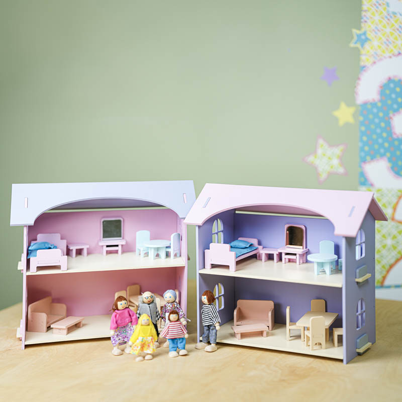 خانه عروسکی چوبی با لوازم رنگ یاسی کد 4433663