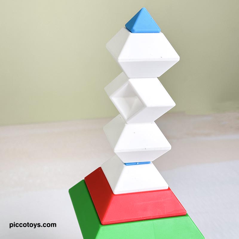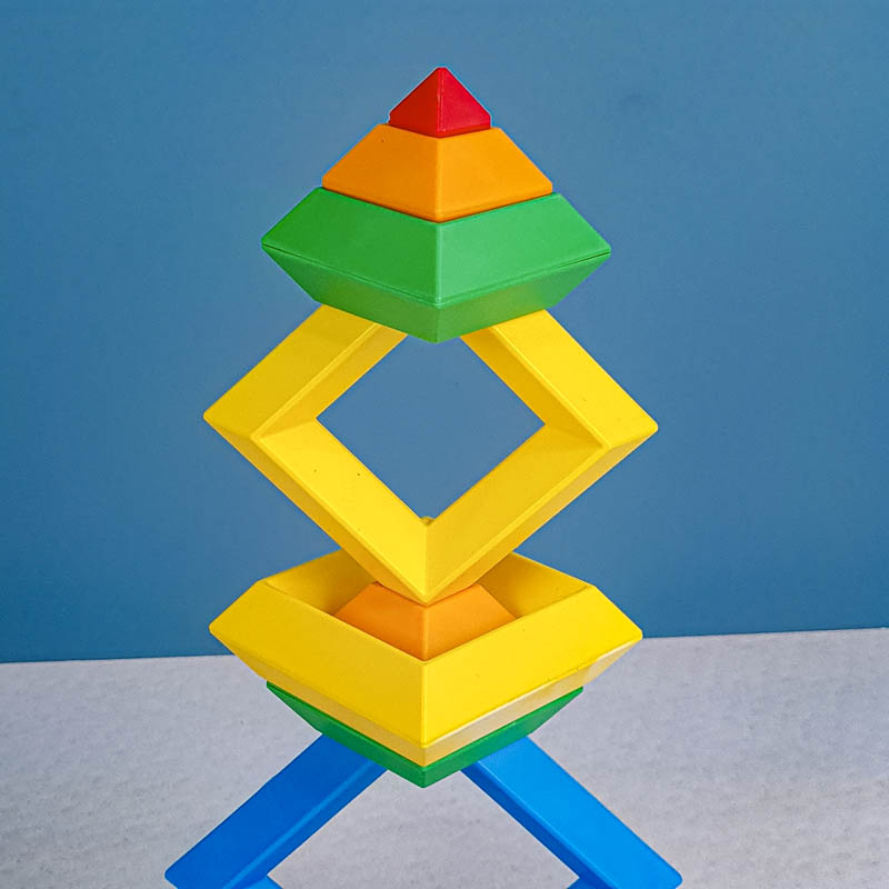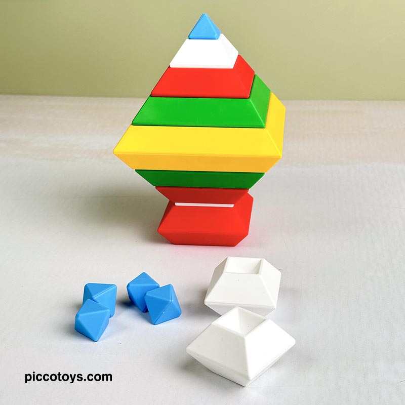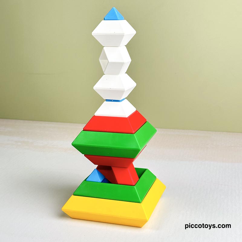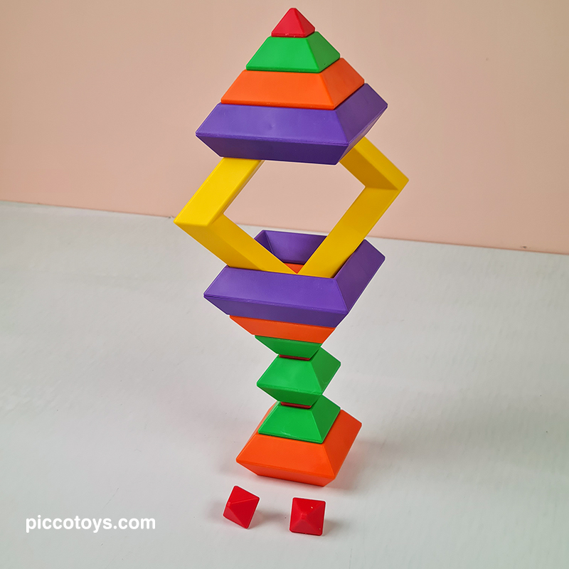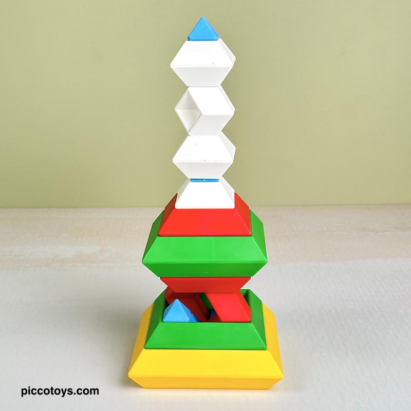 با 15 قطعه رنگی می تونی 3000 تا شکل بسازی. پازل و جورچین برجینو، اشکال سه بعدی هستند که بر روی یکدیگر به جهت های مختلف قرار می گیرند و شکل های خارق العاده ای تشکیل می دهند. اسباب بازی برجینو یکی از بهترین هدایایی هستند که میتوانیم به کودکان 2 تا 10 خود بدهیم. برج هوش ابزارهای آموزشی لذتبخشی هستند که ذهن کودکان را درگیر کرده، باعث تحریک تفکر فضایی، افزایش خلاقیت، تقویت مهارت ها حرکتی میشود و به آنها مهارتهای مهم زندگی را میآموزند. این 15 قطعه جادویی کودکان 2 تا 10 سال را تشویق میکنند تا از خلاقیت درونشان بهره ببرند. در هر دور بازی شکل های جدیدی بسازند و استعدادهای هندسی آنها نیز شکوفا میشود. کودکان با انجام این بازی، مفاهیم زاویه و تراز کردن را درک کرده و سازه های ارق العاده ای میسازند.