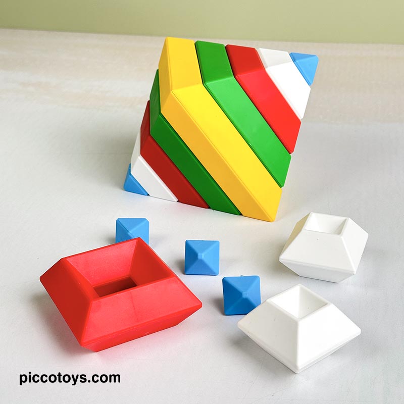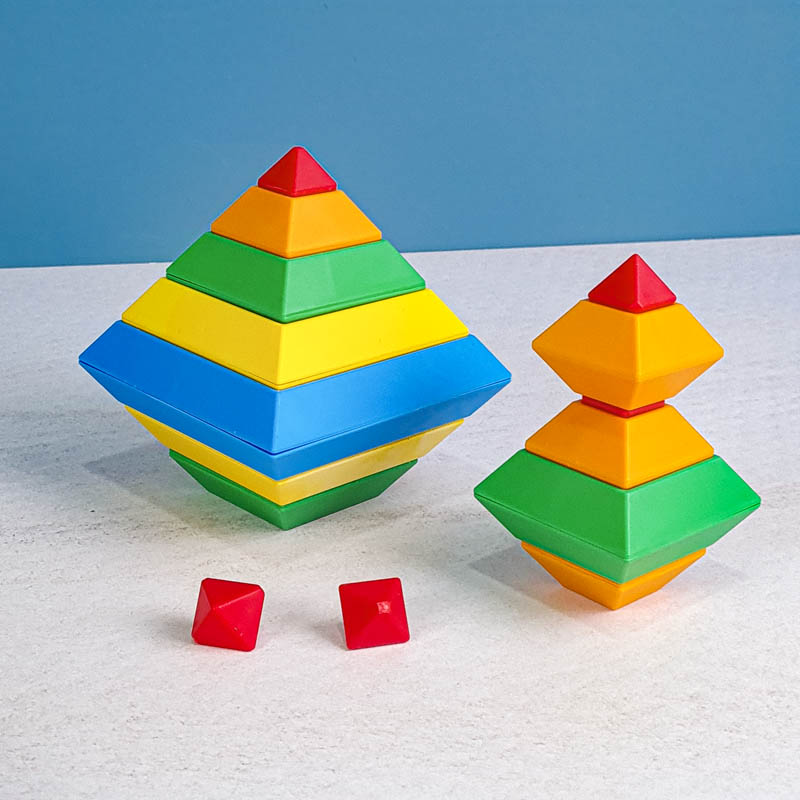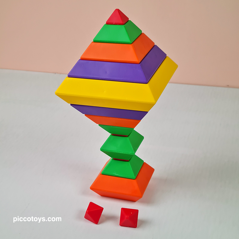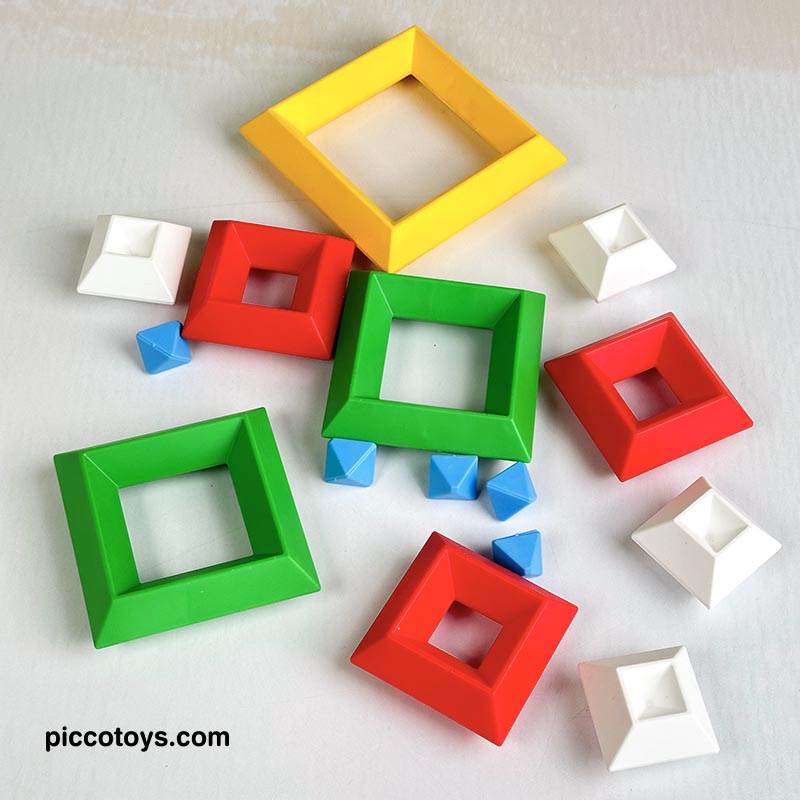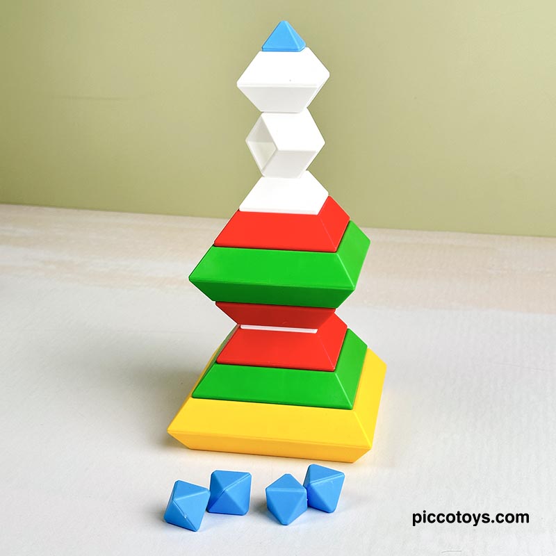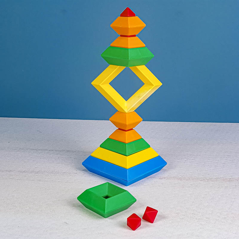 با 15 قطعه رنگی می تونی 3000 تا شکل بسازی. پازل و جورچین برجینو، اشکال سه بعدی هستند که بر روی یکدیگر به جهت های مختلف قرار می گیرند و شکل های خارق العاده ای تشکیل می دهند. اسباب بازی برجینو یکی از بهترین هدایایی هستند که میتوانیم به کودکان 2 تا 10 خود بدهیم. برج هوش ابزارهای آموزشی لذتبخشی هستند که ذهن کودکان را درگیر کرده، باعث تحریک تفکر فضایی، افزایش خلاقیت، تقویت مهارت ها حرکتی میشود و به آنها مهارتهای مهم زندگی را میآموزند. این 15 قطعه جادویی کودکان 2 تا 10 سال را تشویق میکنند تا از خلاقیت درونشان بهره ببرند. در هر دور بازی شکل های جدیدی بسازند و استعدادهای هندسی آنها نیز شکوفا میشود. کودکان با انجام این بازی، مفاهیم زاویه و تراز کردن را درک کرده و سازه های ارق العاده ای میسازند.