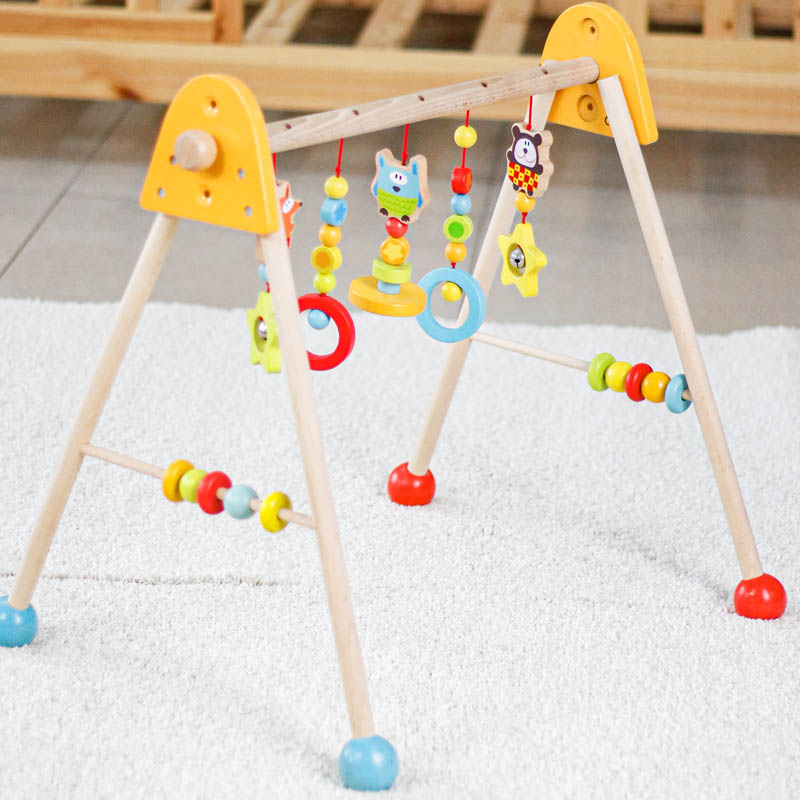 پلی جیم کودک چوبی دارای 5 عروسک ملق و مهره چوبی و قابلیت تنظیم ارتفاع در 3 حالت میباشد.