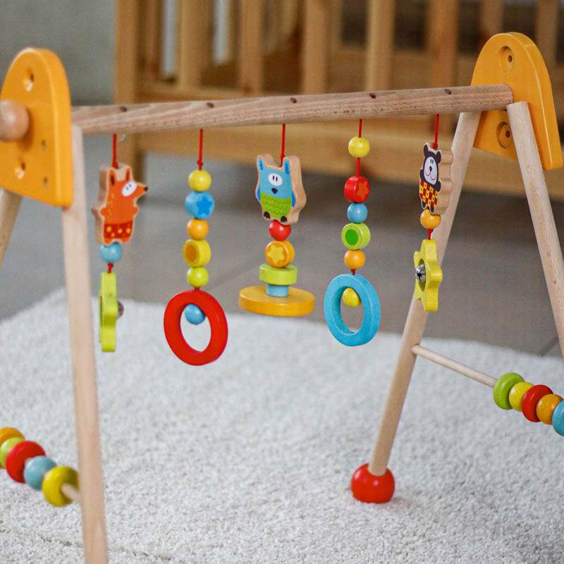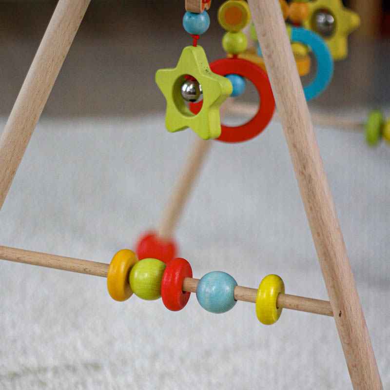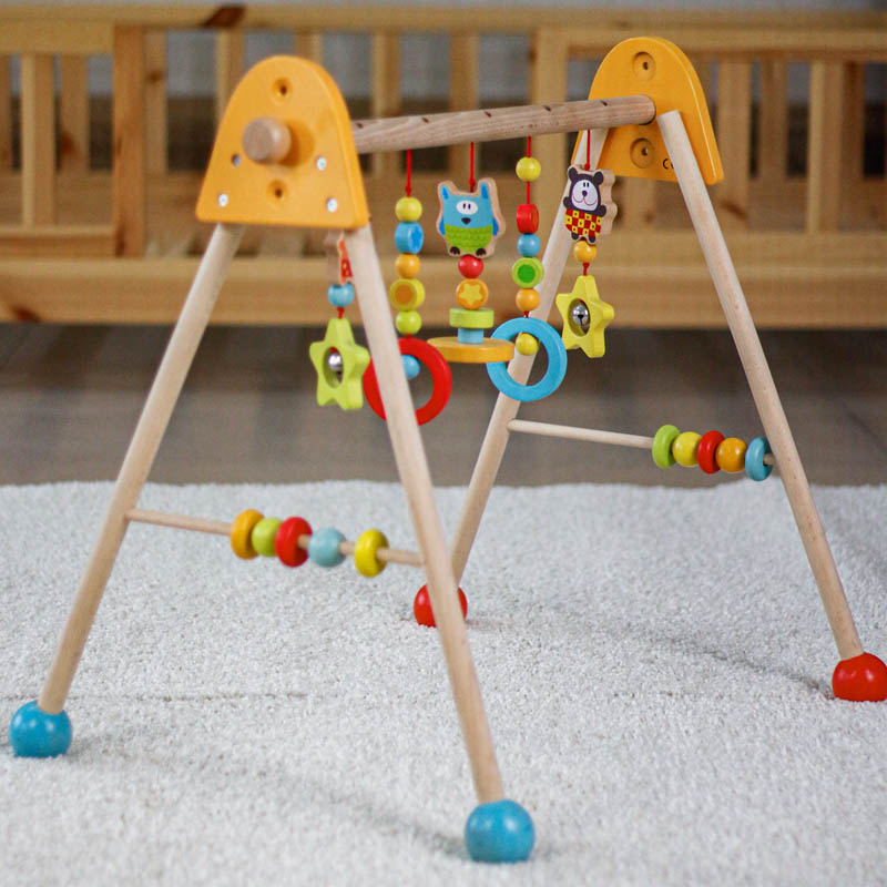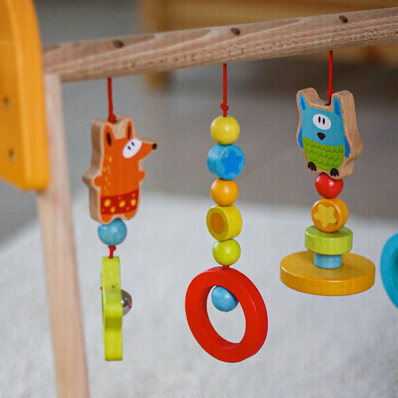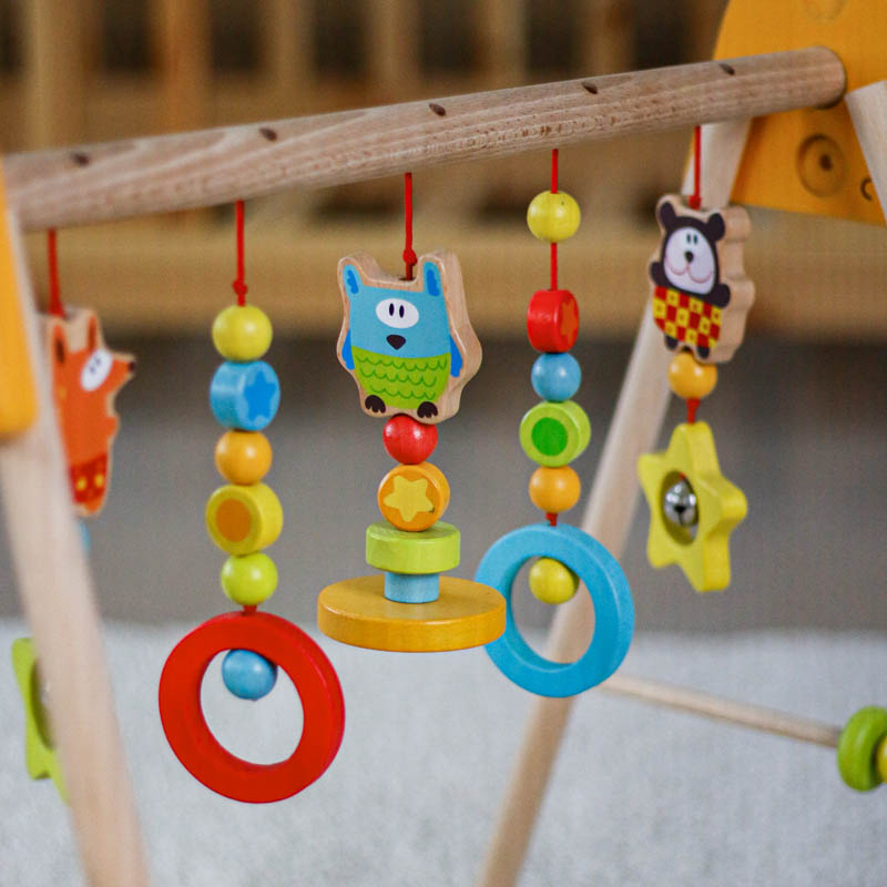 پلی جیم کودک به همراه آویز چوبی برای سرگرم کردن نوزادان و کودکان بسیار ایده آل می باشد . این پلی جیم دارای 5 عروسک و مهره چوبی معلق می باشد همچنین میتوان ارتفاع عروسک ها را در 3 حالت تنظیم کرد.