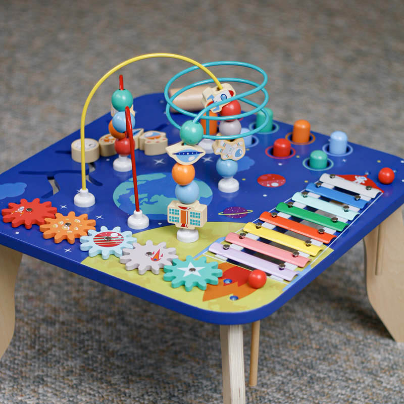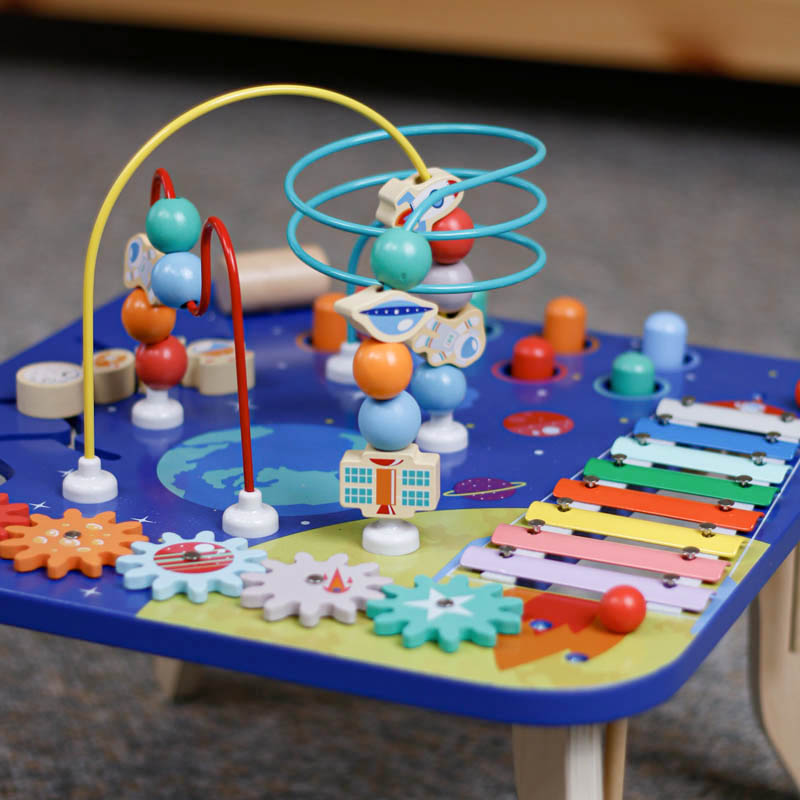 هر قسمت از میز بازی به یک فعالیت کودک تکیه دارد و آن را آموزش میدهد: