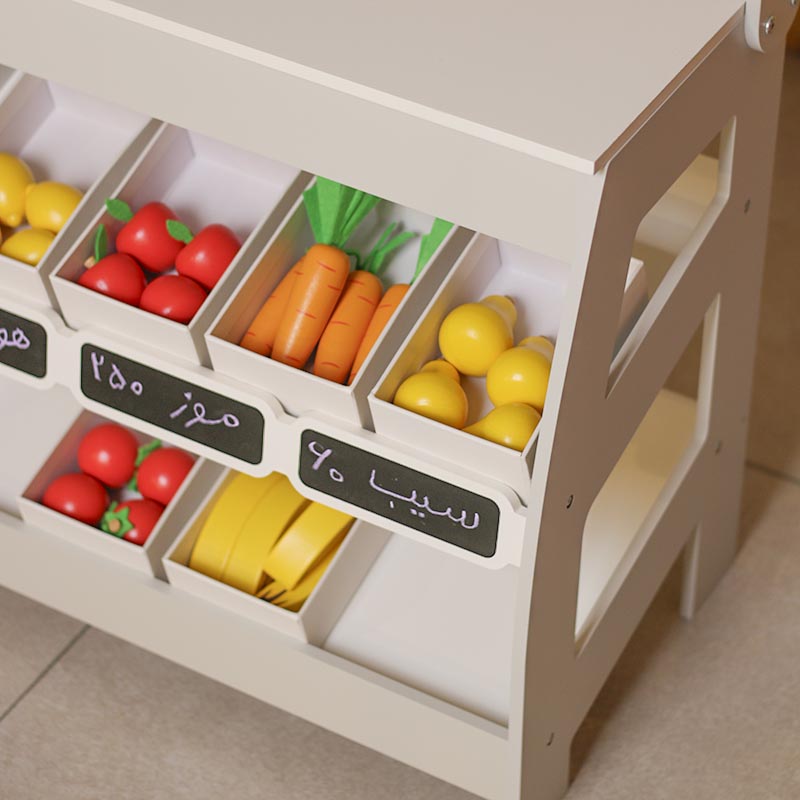بچه ها عاشق نقش بازی هستند و به کمک این استند میوه فروشی جذاب مهارت های تخیلی و اجتماعی فرزندتان تقویت میشود. این محصول دارای طراحی ای زیبا می باشد که به کودک شما حس یک فروشنده ماهر را القا می کند. این میوه فروشی چوبی کودک یک اسباب بازی آموزشی برای کودکانی است که دوست دارند نحوه خرید کردن را یاد بگیرند و در خانه بتوانند نقش آفرینی کنند. اسباب بازی چوبی میوه فروشی کودک در میان بچه ها بسیار پر طرفدار می باشد و به راحتی به سرگرمی مورد علاقه آنها تبدیل می شود.