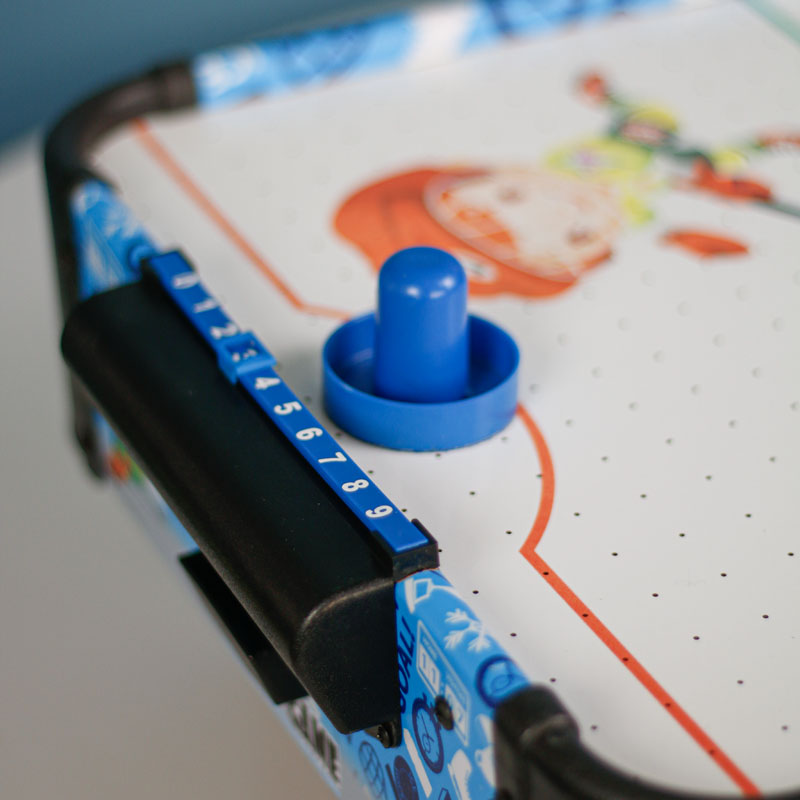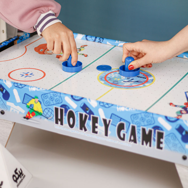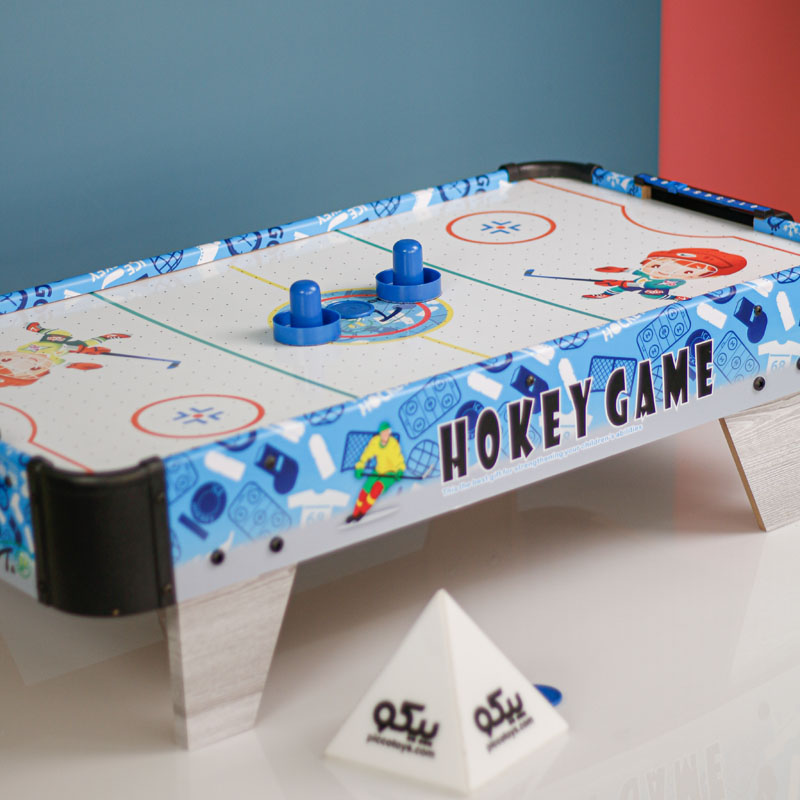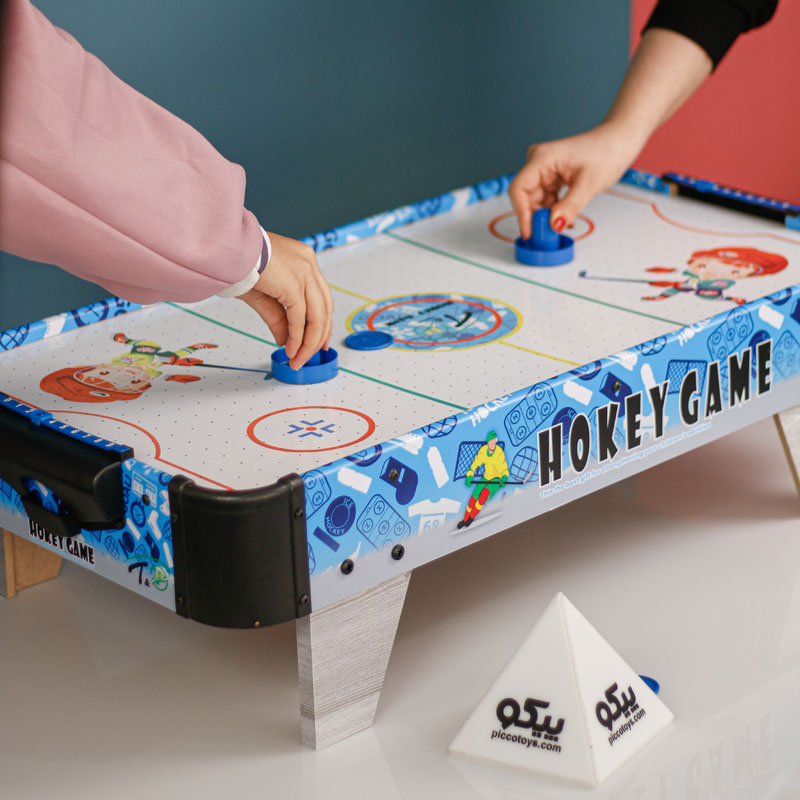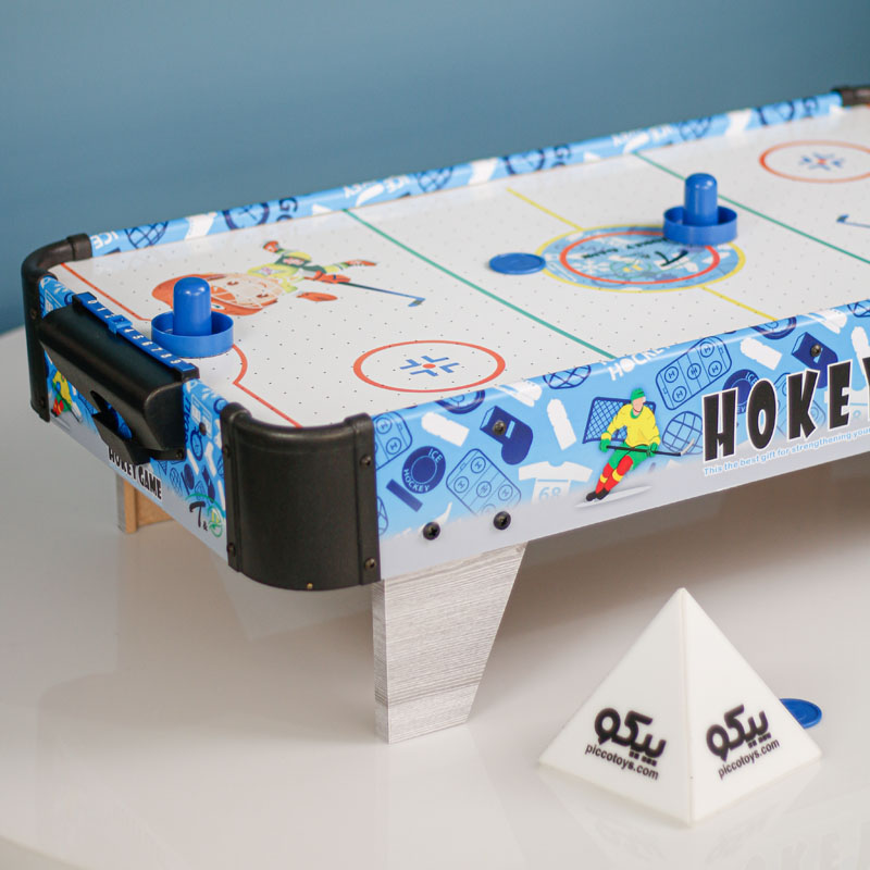 ایرهاکی بزرگ با پایه پیکوتویز از پلاستیک باکیفیت ساخته شده است و حرکت دست درون زمین، آسیبی به کودک نمیرساند. ایرهاکی کودک دارای دو دسته با لبههای گرد است که این لبهها راحتی کاربری را برای کودک آسان میکند. دیسک ایرهاکی هم برای بازی درون بستهبندی قرار گرفته است. بازی بسیار ساده بوده؛ اما با توجه به سرعت بالای دیسک درون زمین به دلیل ضربات واردشده، بسیار مهیج است. یک امتیازشمار در این بازی تعبیه شده است که با واردشدن هر دیسک به درون دروازه، میتوانید امتیازات را ثبت کنید. این بازی برای گروه سنی کودک و نوجوان در نظر گرفته شده است که سبب افزایش مهارتهای حرکتی و مهارتیشان میشود.