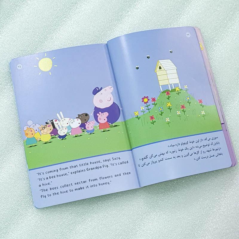 کتاب کودک دو زبانه قصه های پپا پیگ، مناسب برای کودکان رده سنی ب، شامل 6 کتاب با دو زبان فارسی و انگلیسی و 18 داستان می باشد و ماجراجویی های پپا، دختر کوچولوی داستان به همراه خانواده اش است. در این مجموعه کتاب کودکان در موقعیت ها، احساسات و عواطف مختلف با پپا همراه می شوند. مجموعه کتاب قصه های پپا پیگ در هر جلد شامل 3 داستان است که در یک صفحه به زبان فارسی و در صفحه روبروی آن زبان انگلیسی نوشته شده است.