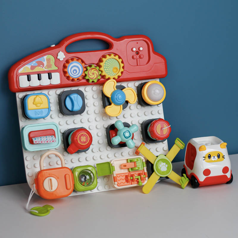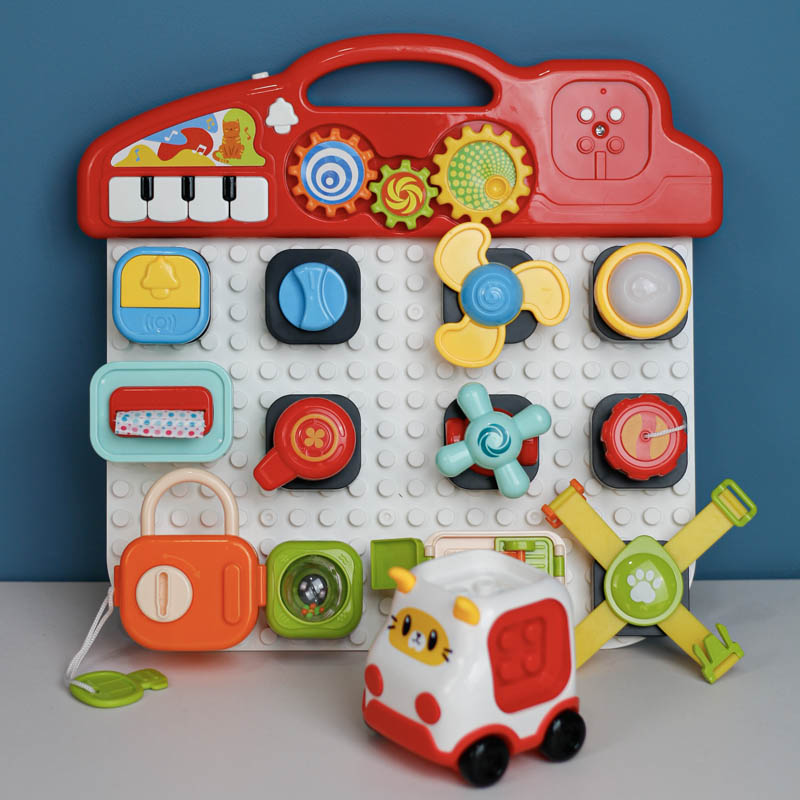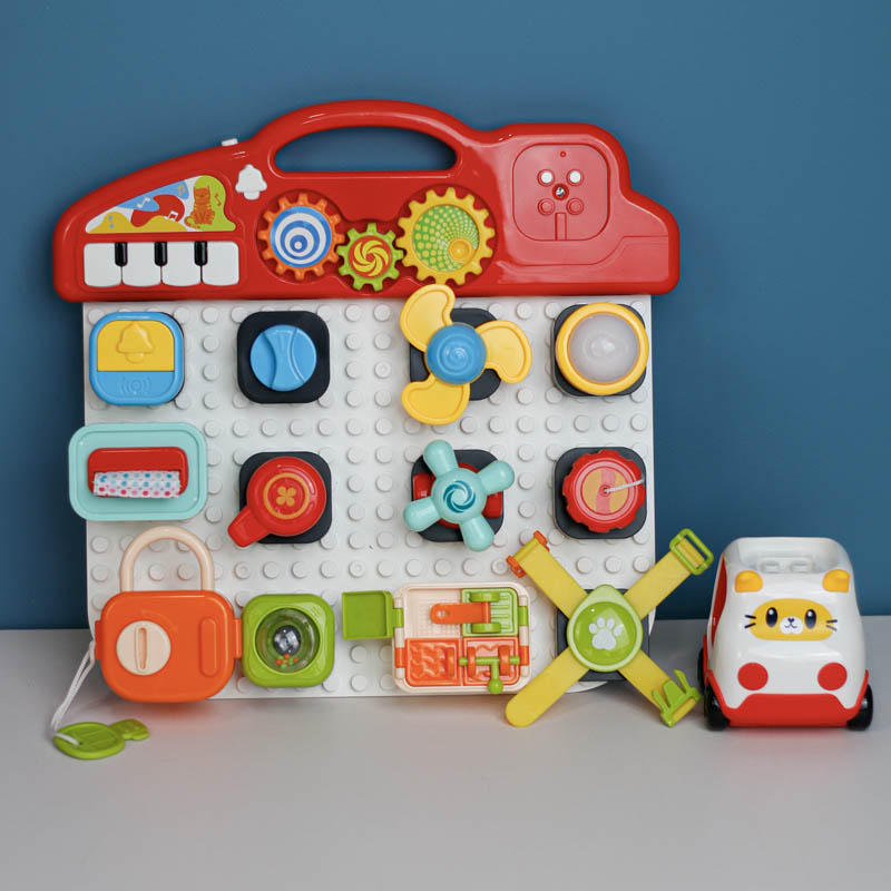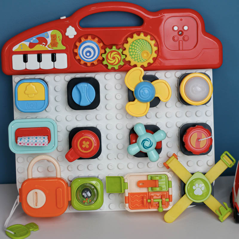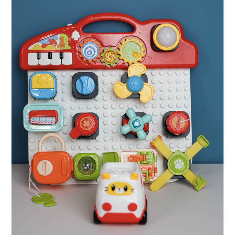 یه تخته با کلی بازی و سرگرمی! این تخته دارای بخش های مختلف از بازی های حسی و مونته سوری برای تقویت مهارت های فکری و دست ورزی کوچولوها. این تخته لگویی موزیکال مانند یک بیزی برد کوچک برای کودکان 1.5 سال به بالا عمل می کند.