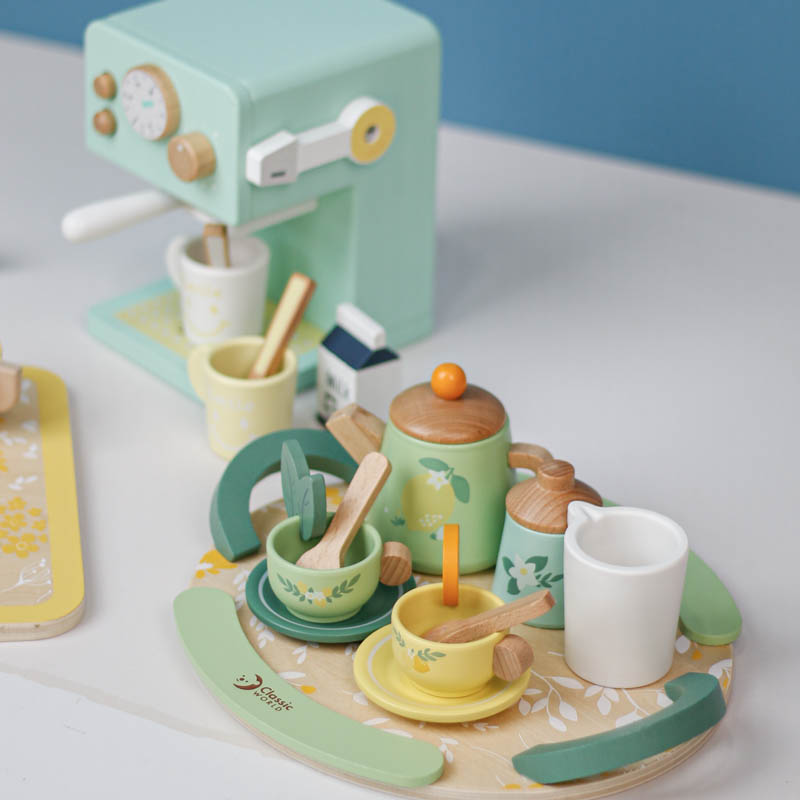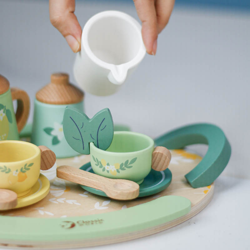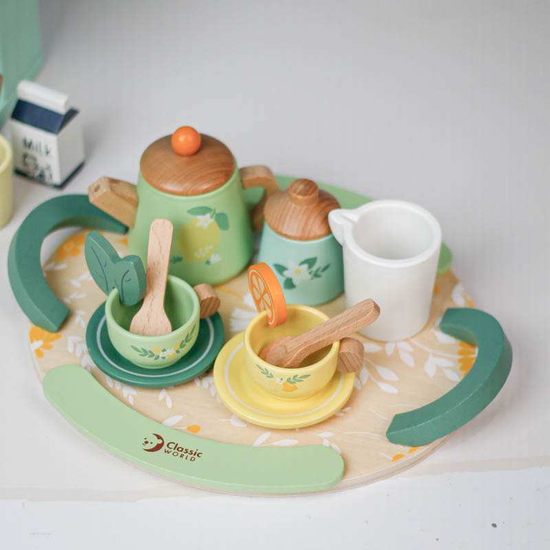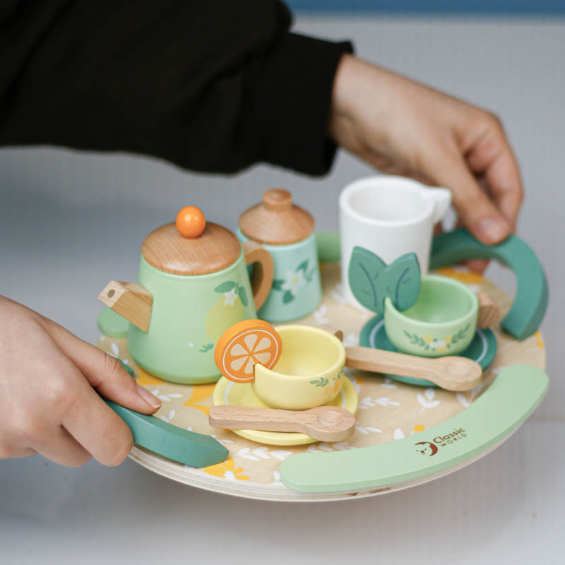 ست چای خوری یک اسباب بازی چوبی مخصوص کوچولوهای مهمان نوازی است که عاشق پذیرایی کردن و خاله بازی با دوستانشون هستند و میتوانند به عنوان میزبانان نقش بازی کنند. این ست اسباب بازی از چوب ساخته شده است که برای دست ظریف کودکان شما ایمن و نرم است. کوچولوها عاشق نقش آفرینی و بازی با غذاها و وسایل آشپزخانه هستند. آیا کودک شما از مهمانی ها لذت می برد؟ دوست دارید تا کاری کنید که او همیشه برای خود مهمانی و جشنی مهیج برگزار کند؟ ست چوبی چای خوری این امکان را به شما می دهد تا کودکان عزیزتان را شاد و شگفت زده کنید. اسباب بازی چوبی ست چای خوری برای کوچولوهایی که عاشق پذیرایی و مهمانی هستند یک اسباب بازی فوق العاده است. همچنین این سباب بازی دارای قطعات مختلف برای برگزاری یک دوره می دوستانه می باشد و با کمک لوازم چای خوری آن, کوچولوی شما می تواند دوستانش را برای یک عصرانه لذیذ دعوت کند. ست چای خوری چوبی دارای تکه های متنوع چوبی از جمله پیش دستی,فنجان,قوری، قاشق و سایر لوازم جانبی می باشد و دارای باکسی جذاب برای قرار دادن کل ست در آن است