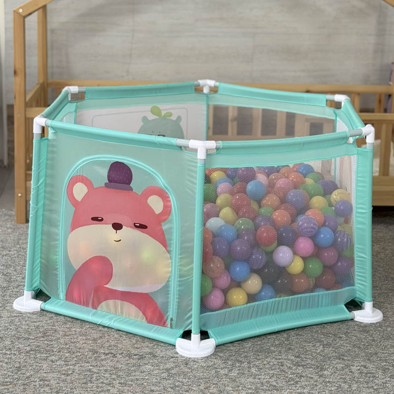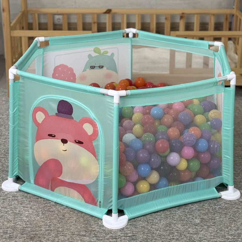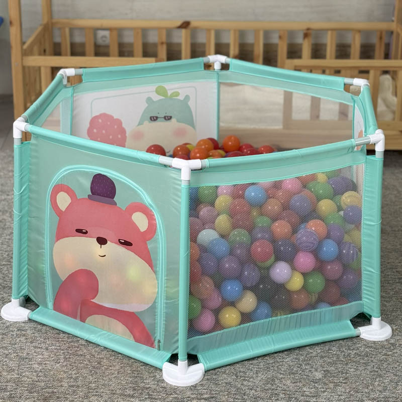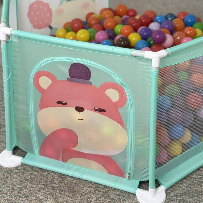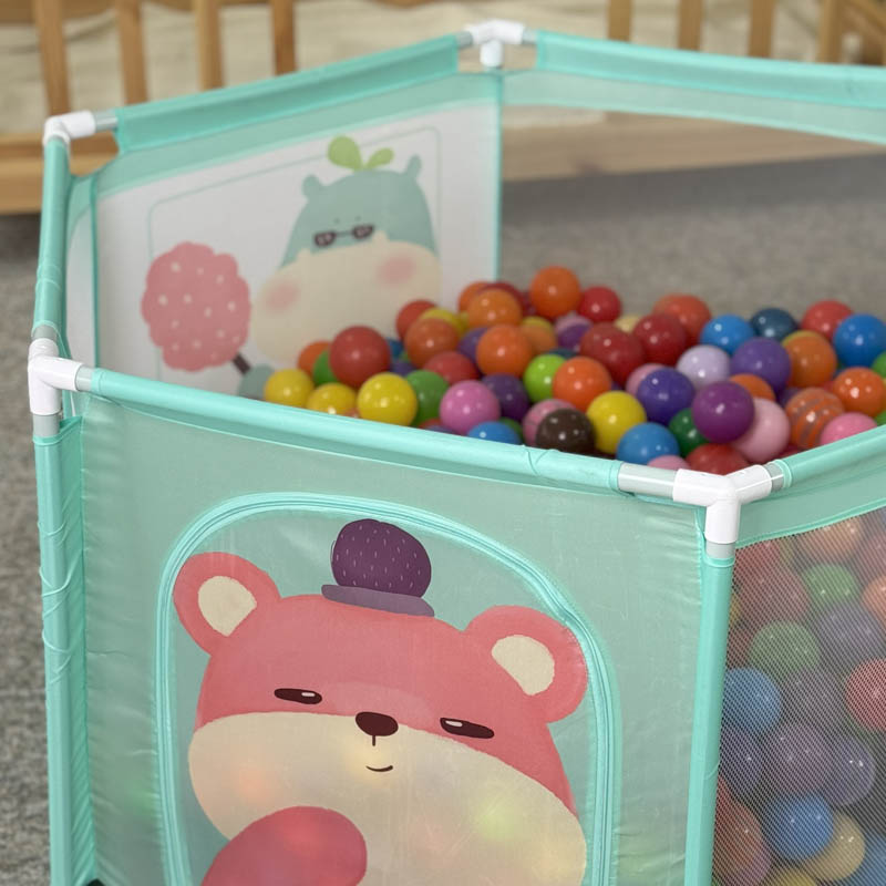 استخر توپ محیطی امن برای بازی کودکان از 6 ماه تا 5 سال است. با خرید استخر توپ کودک 6 ضلعی فضای تقریبی 1.23 متر را برای بازی در اختیار کودک قرار میدهد. این استخر توپ از جنس پارچه ای است و دارای بست های پلاستیکی بسیار با دوام است. همچنین با پر کردن این استخر توپ از توپ های رنگی پلاستیکی یک فضای بازی مهیج برای کودکان ایجاد می شود. کودکان نوپا درهنگام حرکت مدام به اطراف برخورد میکنند، برای ایجاد محیطی امن، پیشنهاد ما پارک حفاظ کودک یا همان استخر توپ است. برای بازی کافی است توپ رنگی را داخل پارک بازی کودک قرار دهید و شاهد هیجان کودک باشید.