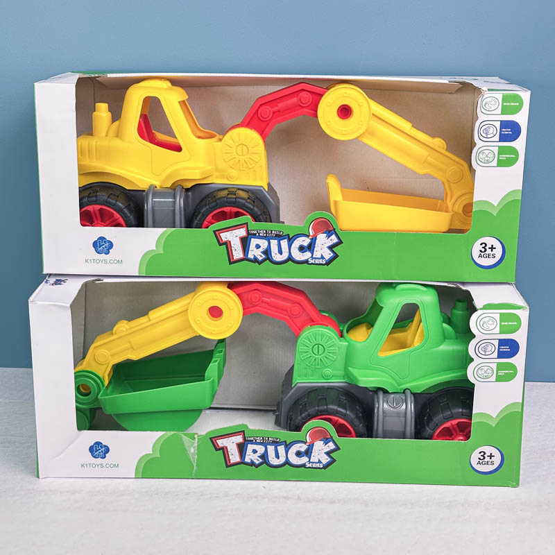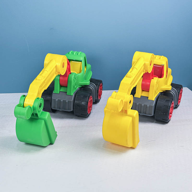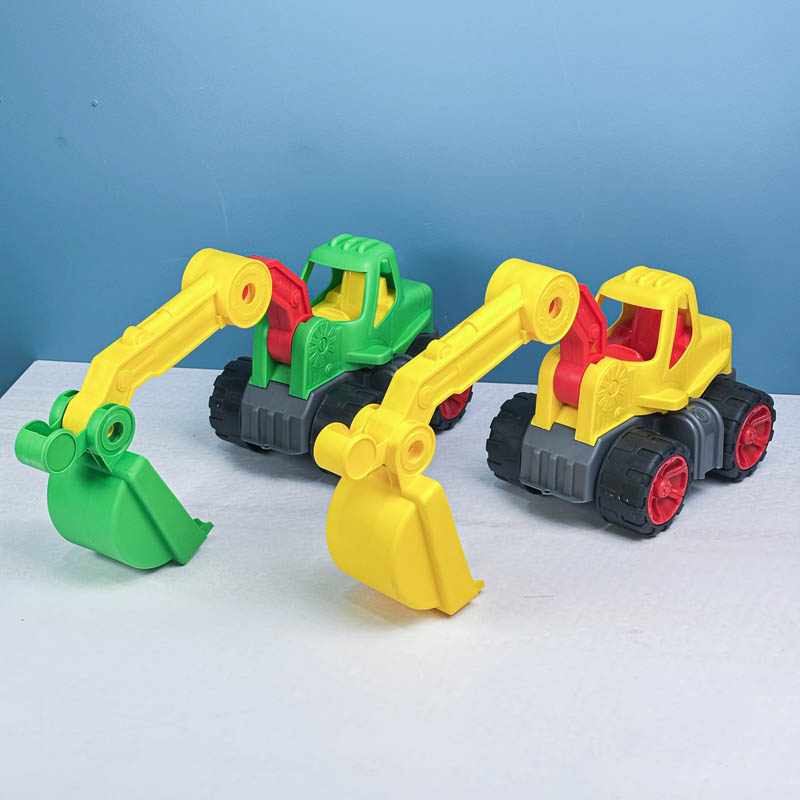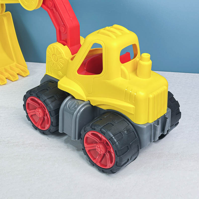این اسباب بازی از پلاستیک مقاوم ساخته شده که در برابر ضربه مقاوم بوده و در برابر حساسیت پوستی کودکان به دلیل استفاده شده از مواد بسیار مرغوب واکنشی نشان نمیدهد. اسباب بازی کامیون بیل مکانیکی بزرگ با قابلیت حرکت بیل ها باعث ایجاد خلاقیت در کودکان می شود تا بتوانند مهارت های فردی خود را به چالش بکشند. متعلقات متصل شده به اسباب بازی از مواد پلیمری ساخته شده و مناسب برای بالای 3 سال است.