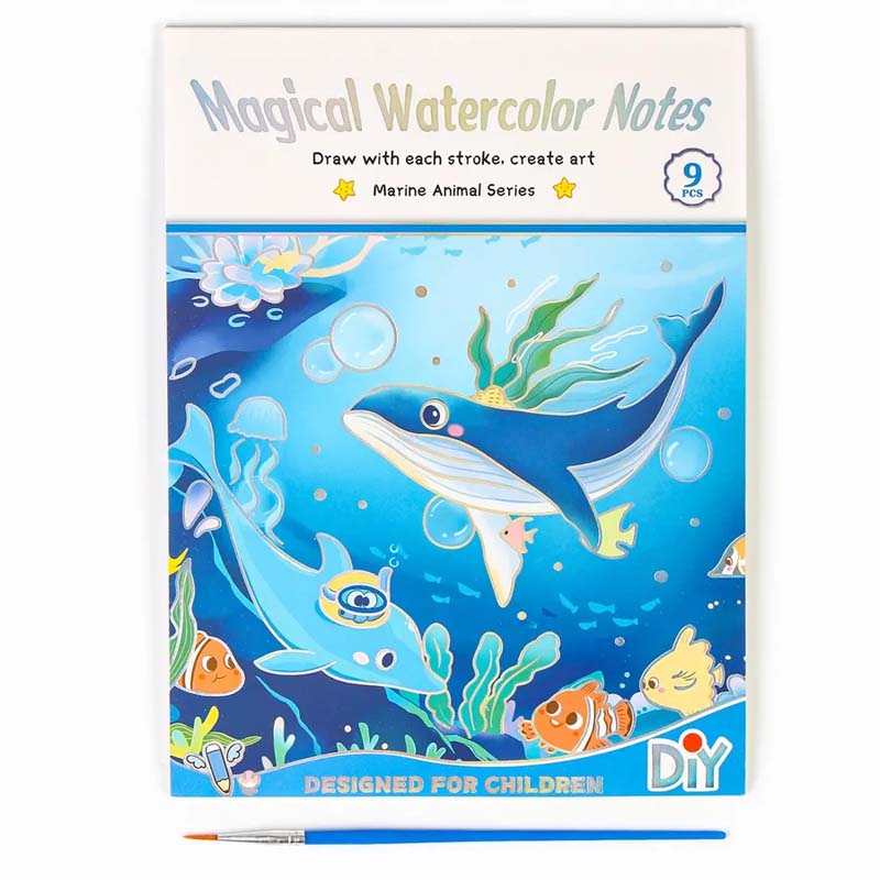 دفتر نقاشی آبرنگی طرح حیوانات دریایی