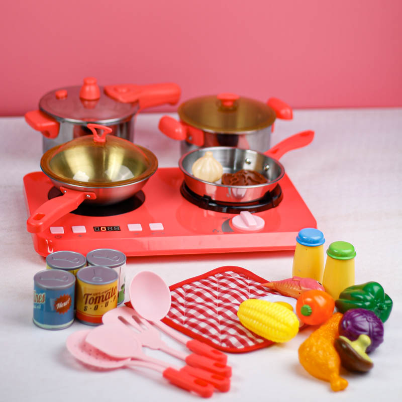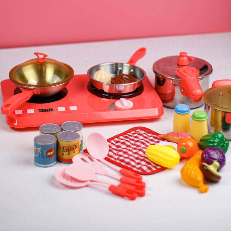 ویژگی اجاق گاز اسباب بازی رومیزی 32 تکه رنگ صورتی