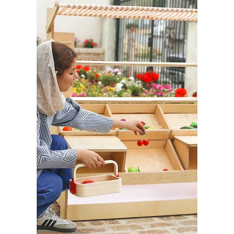 بچه ها عاشق نقش بازی هستند و به کمک این استند میوه فروشی جذاب مهارت های تخیلی و اجتماعی فرزندتان تقویت میشود. این محصول دارای طراحی ای زیبا می باشد که به کودک شما حس یک فروشنده ماهر را القا می کند. این میوه فروشی چوبی کودک یک اسباب بازی آموزشی برای کودکانی است که دوست دارند نحوه خرید کردن را یاد بگیرند و در خانه بتوانند نقش آفرینی کنند. اسباب بازی چوبی میوه فروشی کودک در میان بچه ها بسیار پر طرفدار می باشد و به راحتی به سرگرمی مورد علاقه آنها تبدیل می شود.