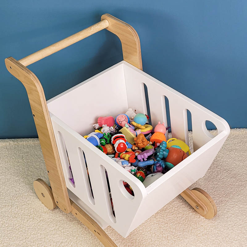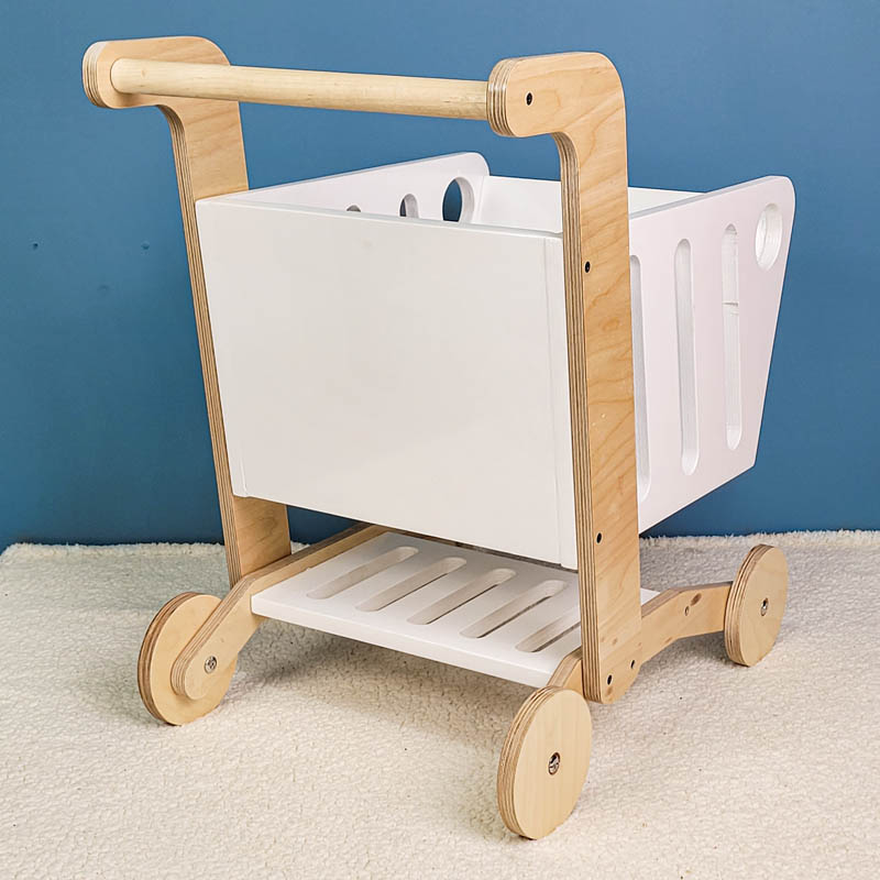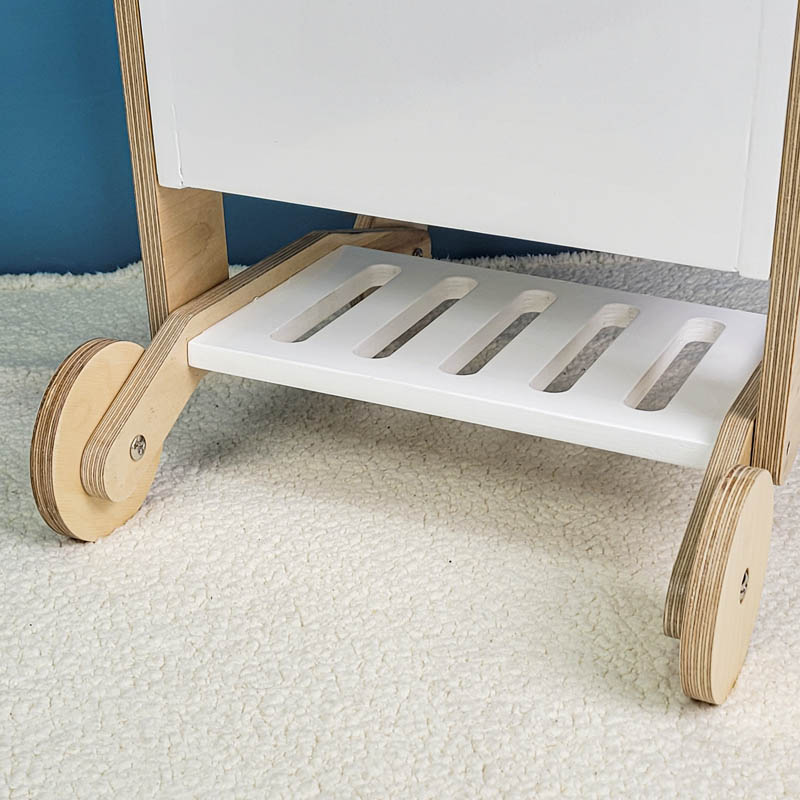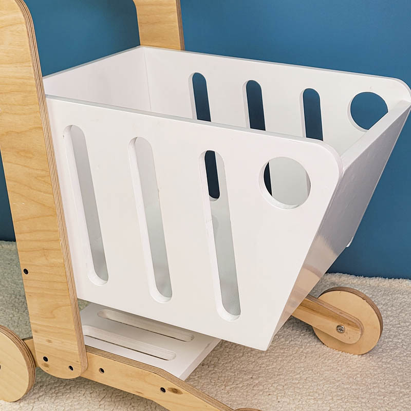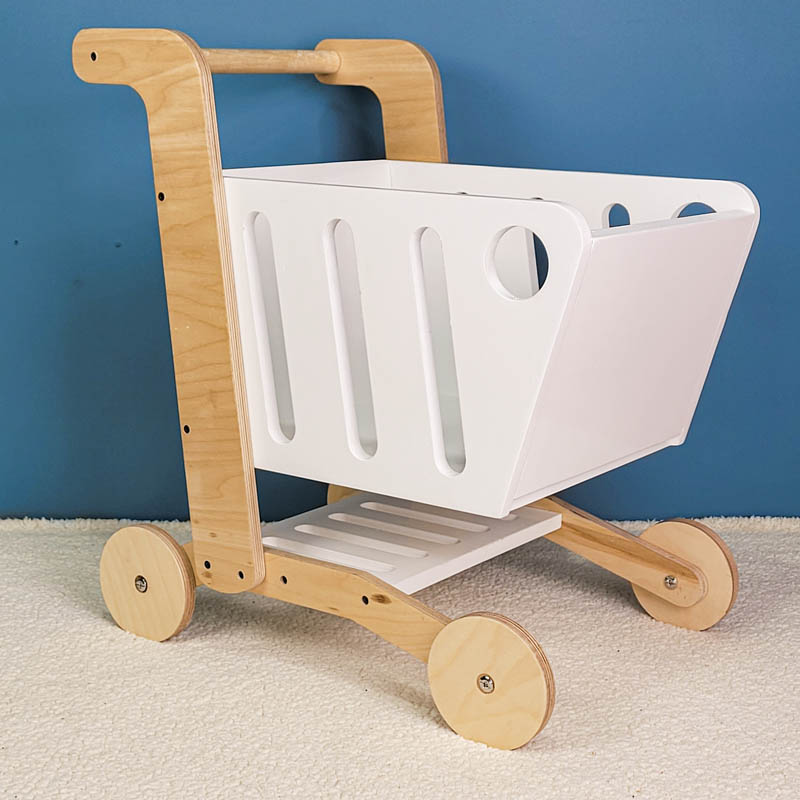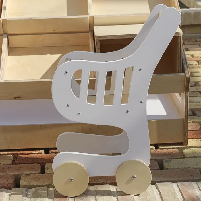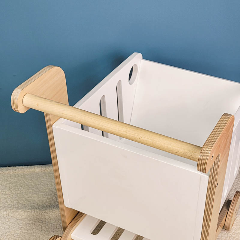 اسباب بازی ترولی سوپرمارکت چوبی جذاب برای بچه هاییه که دوست دارن توی خونه نقش آفرینی کنن . این ترولی از جنس چوب در رنگ جذاب سفید ساخته شده، چرخ های روانی داره و برای بازی بچه ها در خانه، مهدکودک، خانه بازی، خانه مشاغل و... عالیه!
