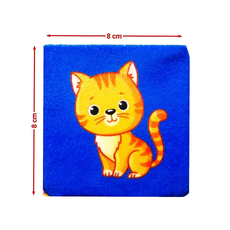 مکعب پارچه ای آموزشی حاوی 6 مکعب با 6 وجه است که در هر وجه شش تصویر متنوع وجود دارد. این مکعب ها دارای تصاویر زیبا از حیوانات، می باشد.اسباب بازی مکعب پارچه ای برای نوزادان از 6 ماه طراحی شده است. بازی کردن با این مکعب های پارچه ای در تقویت ماهیچه های کودک و دست ورزی موثر است. جنس نرم پارچه و وزن سبک از ویژگی های اصلی این محصول است که آن را تبدیل به وسیله ای ایمن جهت استفاده نوزادان می سازد. این اسباب بازی نوزاد ضد حساسیت، قابل شستشو و ایمن می باشد این مجموعه 6 عددی درون یک کیف کوله مانند پلاستیکی قرار گرفته است.