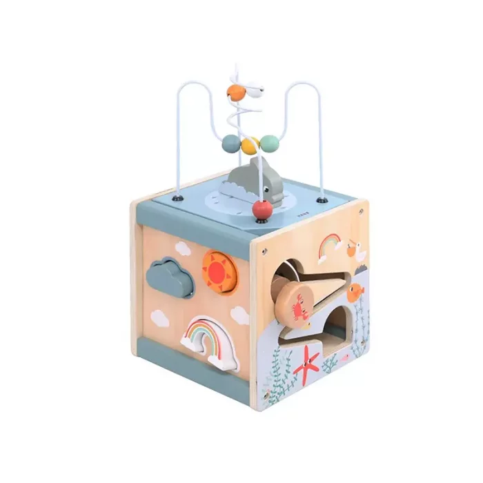 اسباب بازی مکعب هوش برای کودکان بالای 18 ماه یک اسباب بازی چوبی آموزشی بی نظیر محسوب میشود. اسباب بازی چوبی مکعب هوش سایز دارای 5 وجه جذاب شامل بازی های مختلف پازل جایگذاری، میله و مهره، سرسره، تطبیق و جورچین می باشد. اگر طرفدار اسباب بازی چوبی هستید و در عین حال به دنبال یک اسباب بازی آموزشی فکری میگردید، اسباب بازی مکعب هوش یک انتخاب هوشمندانه و فوق العاده برای شماست.