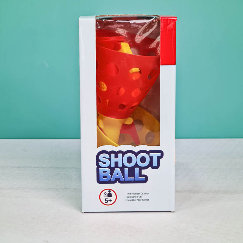 اسباب بازی شوتبال یک بازی دونفره هیجان انگیز و حرکتی است که با دو دسته سبد دار و 2 عدد توپ انجام میشود. دسته های سبد دار این اسباب بازی قابلیت پرتاب توپ را دارند که توسط ماشه ای که روی دسته قرار دارد انجام میشود و بازیکنان باید توپی را ک طرف مقابل پرتاب میکند درون سبد خودش مهار کند این توپ تا 8 متر پرتاب میشود. اسباب بازی شوتبال مناسب گروه سنی 5 سال به بالا است. داخل هر جعبه بازی دو عدد دسته سبد دار با قابلیت جدا کردن سبد از دسته و روی هر دسته یک عدد ماشه برای شلیک توپ می باشد. این بازی سرگرم کننده است که می تواند قدرت تمرکز تان را بالا ببرد.