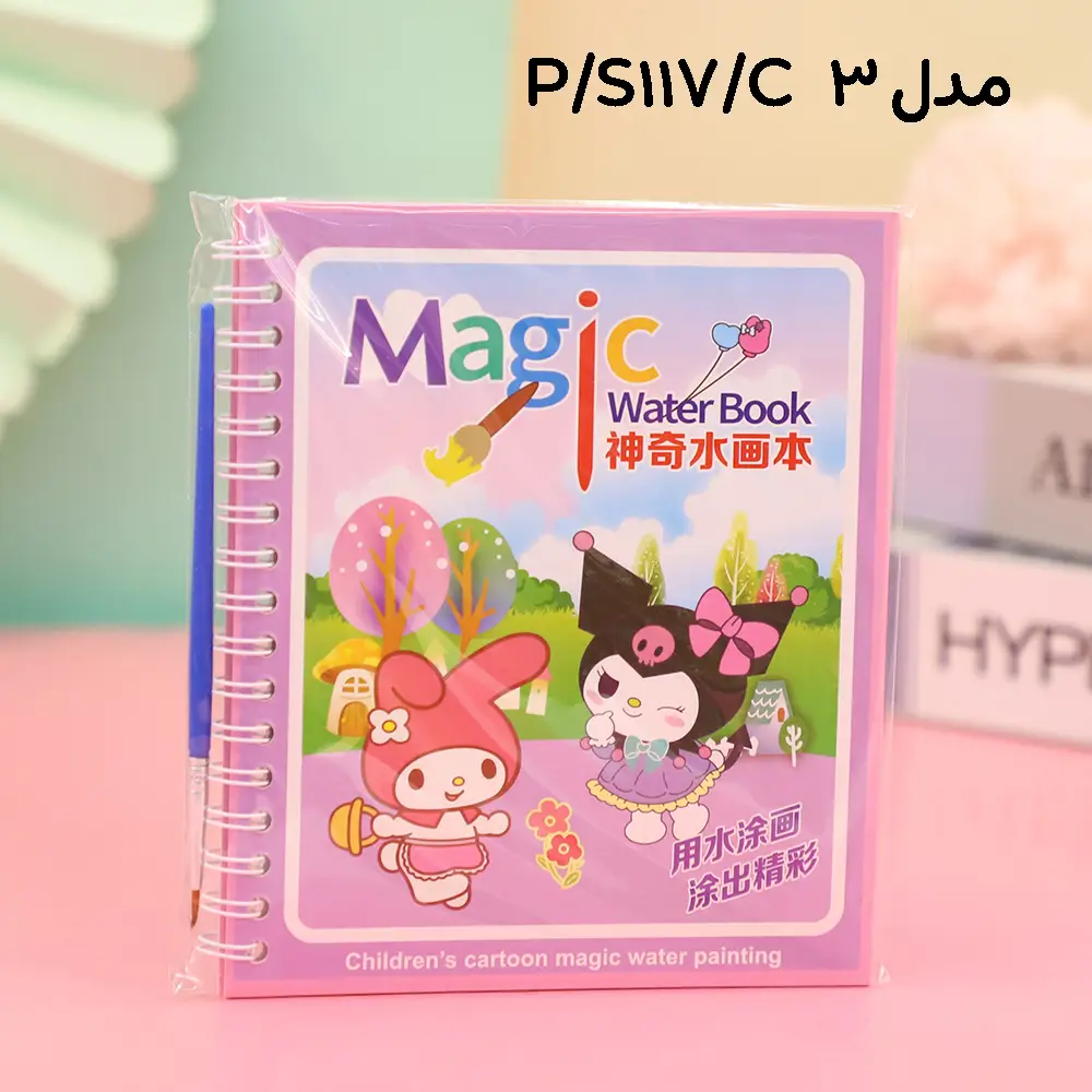 یک اسباب بازی جدید و سرگرم کننده، دفتر رنگ آمیزی یک دفتر رنگ آمیزی جادویی دخترانه و پسرانه برای گروه سنی بالای 3 سال است. این دفتر رنگ آمیزی شامل یک دفتر 8 برگی و یک قلم مو است.هیچ جوهر و مواد رنگی در این دفتر نقاشی استفاده نمی شود و فقط با آب کار میکند و هیچ خطری برای سلامتی کودک به همراه ندارد.کتاب رنگ آمیزی جادویی شامل 8 صفحه (4 برگ) است 4 صفحه مربوط به رنگ آمیزی قرار گرفته که کودک میتواند ساعت ها سرگرم شوند. نحوه استفاده از مجیک واتر یا دفتر نقاشی به این شکل است که فقط کافیست مقداری آب درون کتاب جادویی بریزید یا قلم مو را آغشته به آب کنید و آن را روی صفحات مخصوص رنگ آمیزی بکشید. به این صورت طرح و رنگ صفحات مشخص می شود و بعد از گذشت مدت زمان کوتاهی و با خشک شدن آب از صفحه طرح و رنگ محو می شود و برای کودک این امکان را فراهم میکند که مجدد روی کتاب جادویی نقاشی بکشد.