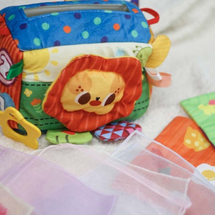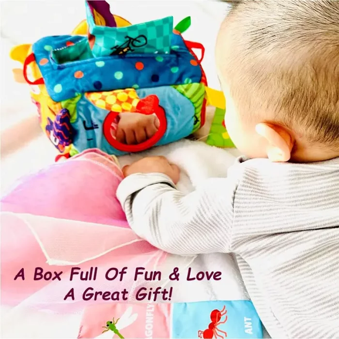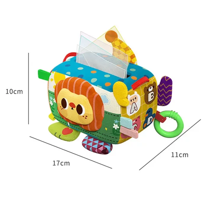 بهترین اسباب بازی حسی و مونته سوری برای شناخت رنگ ها، صدا ها و بافت های مختلف! اسباب بازی باکس دستمال حسی از 2 کاغذ پارچه چند لایه صدادار دو رو و 7 حریر رنگارنگ به همراه باکس دستمال تشکیل شده است که مخصوص نوزادان 0 تا 12 ماه است. با رنگ های زنده و صداهای جذاب، توجه کودک را به خود جلب می کند، مهارت های حرکتی ظریف، تمایز رنگ ها، رشد شنوایی و بینایی و رشد مغز را در اوایل کودکی تقویت می کند.