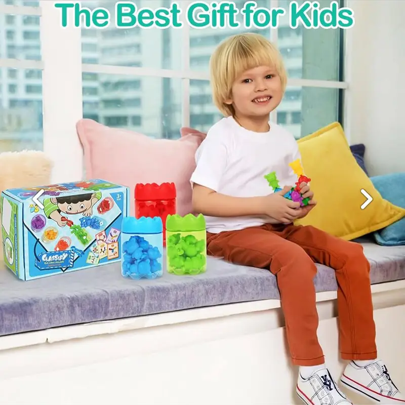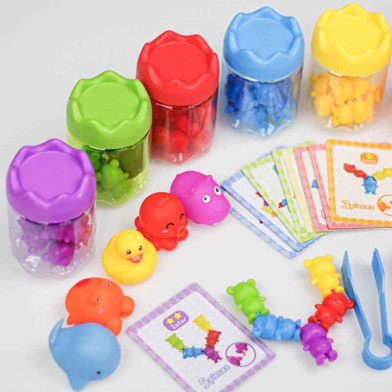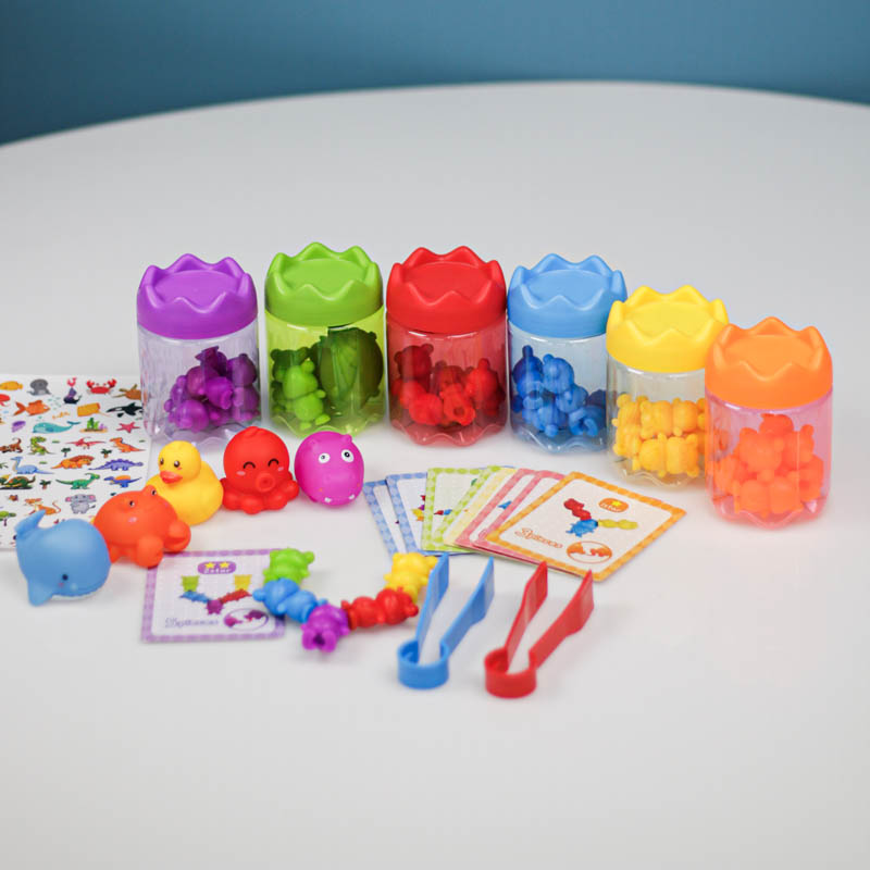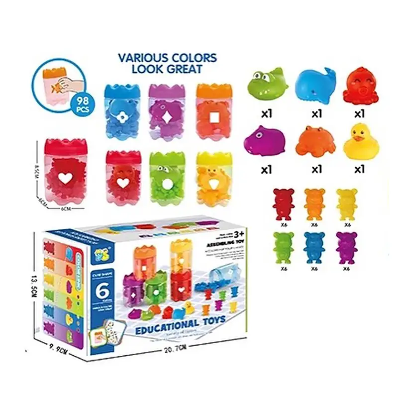 ست آموزشی خرسهای رنگی – یادگیری مفاهیم پایه با بازی، ست خرسهای رنگی دستهبندی و شمارش یک ابزار آموزشی فوقالعاده برای کودکان پیشدبستانی و مهدکودکیه که یادگیری مفاهیم پایه مثل رنگ، شمارش، الگو، دستهبندی و تطبیق رو به یه بازی شیرین تبدیل میکنه! تازه این خرس های شگفت انگیز را مشابه تصویر می توانید به هم متصل کنید در نتیجه این اسباب بازی مونته سوری یک اسباب بازی ساختنی فوق العاده و خاص نیز برای بچه ها می باشد.