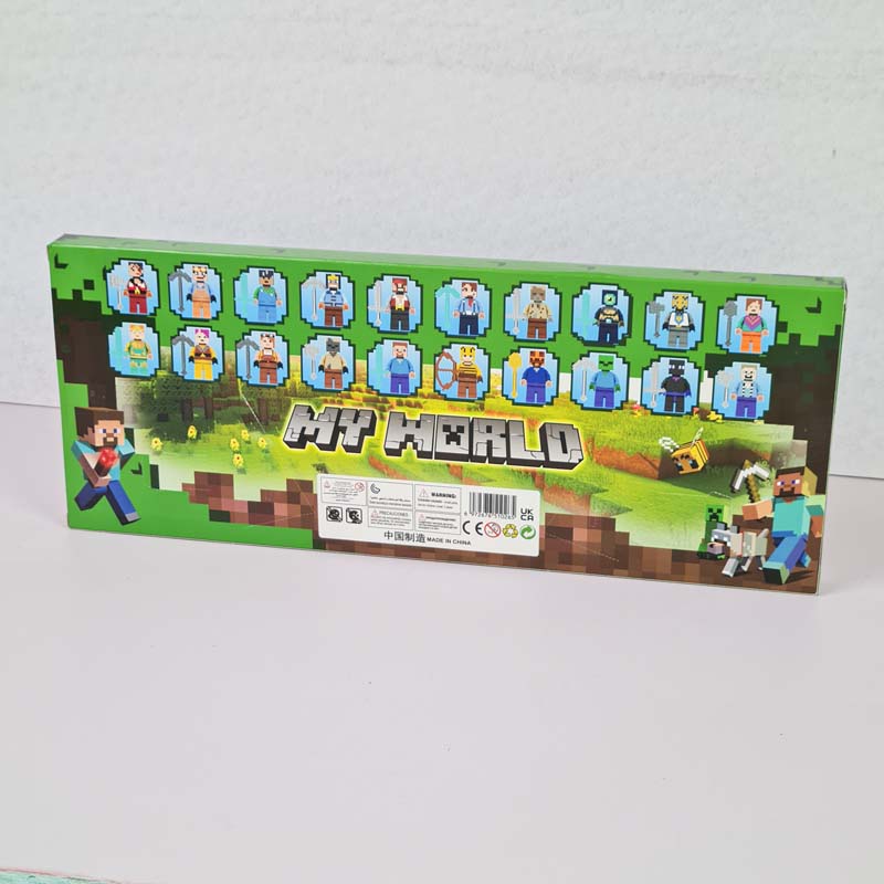 پر طرفدارترین بازی جهان بازی ماینکرفت است. این اکشن فیگور شامل 20 عدد فیگور ماینکرفت، 20 عدد استند است که هر شخصیت دارای سلاح های ماینکرفتی نیز می باشد که برای طرفداران این بازی بسیار هیجان انگیز است. این مینی فیگور برای کودکان بالای 3 سال مناسب است.