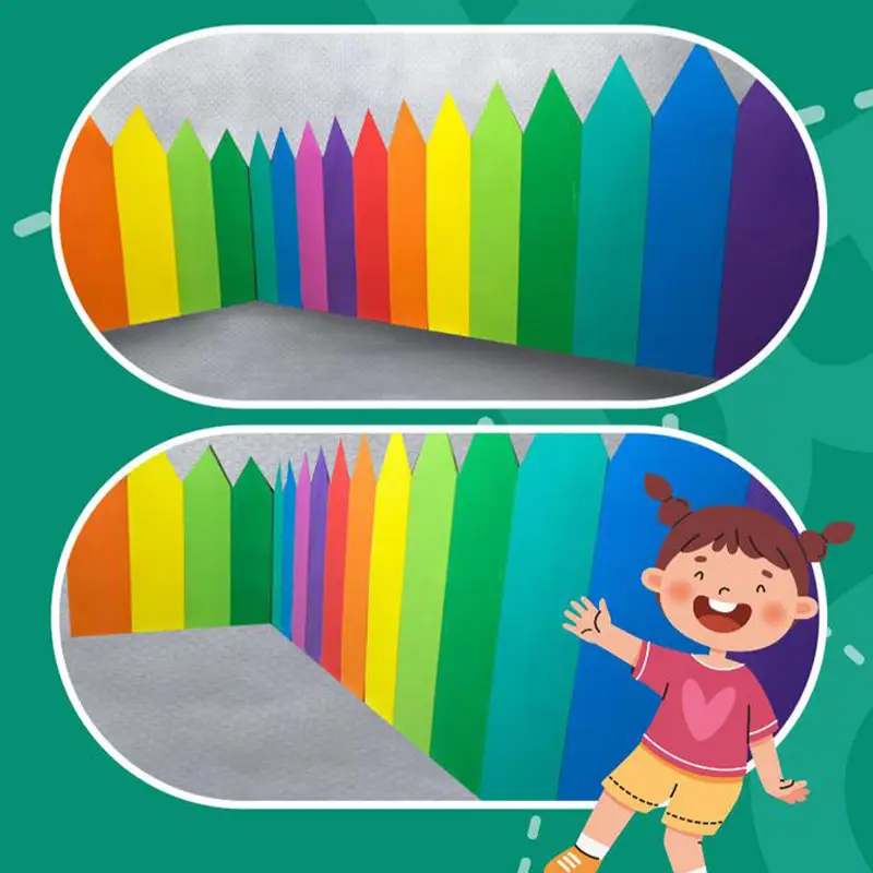 دیوار پوش های مهدکودک محصولی برای پوشش، زیبایی و ایمن سازی محیط بازی کودک مثل خانه بازی، مهد کودک است.این دیوار پوش ها به صورت تایلی هستند و جنس آن ها فومی است که دارای 8 رنگ مختلف و زیبا است. دیوارپوش ها علاوه بر جنبه ایمن سازی ضربه گیری طرح و رنگبندی زیبا و متنوعی که دارند بسیار مورد توجه طراحان دکوراسیون داخلی و مهدکودکها و خانه بازی ها قرار گرفته است. دیوارپوش مدادی با طول هر تایل 25 ارتفاع 120 و ضخامت 8 سانتیمتر است که هر 4 عدد تایل فضایی حدود 1 متر را پوشش می دهد. دیوار پوش تایلی مدادی دارای 8 رنگ مختلف است و دارای روکش لمینه شفاف است. این دیوارپوش قابلیت نصب بسیار راحت توسط خود خریدار دارد