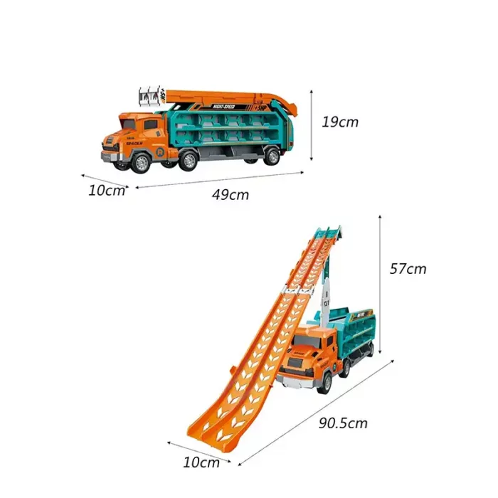 کامیون حمل ماشین اسباب بازی دارای یک ریل تاشو است که به راحتی باز می شود و از کامیون ارتفاع میگیرد، طول سرسره به 86 سانتیمتر می رسد. این کامیون اسباب بازی مناسب کودکان بالای 3 سال است و شامل 6 ماشین مسابقه کوچک در رنگهای مختلف است که برای پسربچه ها بسیار هیجان انگیز خواهد بود و هدیه مناسب برای تولد 3 سالگی آنهاست. هدایت کردن کامیون بزرگ اسباب بازی میتونه حسابی هیجان انگیز باشه و یک مسابقه هیجان انگیز برای کودکان به حساب می آید. کامیون حمل ماشین مسابقه یک محصول جذاب برای پسر کوچولوهاست. این کامیون قدرتی با دست به سمت جلو و عقب حرکت می کند و کودک می تواند با آن بازی کند. اما مهم ترین کاربرد این کامیون، به عنوان ماشین حمل و نقل است که کودک میتواند ماشین های طرح دار کوچک رنگارنگ که درون خود بسته بندی قرار دارد و همینطور ماشین های کوچک مسابقه را در آن را در آن بچیند و از این کامیون به عنوان ماشین حمل برای ماشین های کوچکش استفاده کرد. این کامیون دو طبقه برای قرار گرفتن ماشین دارد. این کامیون اسباب بازی از جنس پلاستیک با کیفیت abs و دارای لبه های نرم و ایمن است. کوچولوها می تونن بعد از تمام شدن بازی ماشین ها را در جای خود قرار دهند و به این صورت از گم شدن و پخش شدن اسباب بازی ها جلوگیری می شود. شما میتونین این اسباب بازی کودک رو به عنوان اسباب بازی پسرانه به پسر بچه هایی که عاشق ماشین بازی و اسباب بازی های کامیون هستند هدیه بدین. این کامیون به همراه 6 ماشین کوچک مسابقه در رنگبندی های زیبا است.