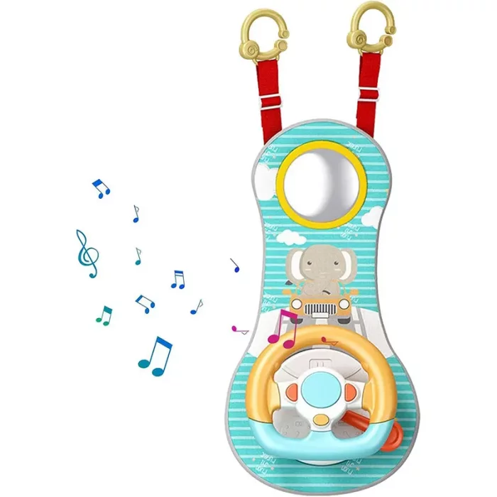 اسباب بازی فرمان موزیکال رنگ زرد آبی یک اسباب بازی جذاب برای هر راننده کوچولوییست. کافیه این فرمان رو به پشت صندلی ماشین و یا کالسکه و سه چرخه کودک و یا تخت خواب کودک نصب کنید تا ساعتها سرگرمی رو برای کودک مهیا کنید. این فرمان یک صفحه پلاستیکی با روکش پارچه ای با طرح فیل دارد این فرمان قابلیت چرخش 360 درجه دارد. در بالای این صفحه بازی یک آینه برای دقت و توجه بیشتر کودک قرار دارد که حس یک ماشین بازی واقعی را به کودک هدیه میدهد و برای تقویت حواس و مهارت کودک عالیست. روی فرمان این اسباب بازی دکمه هایی برای پخش استارت، بوق، راهنمای چپ و راست وجود دارد. با این فرمان موزیکال کودک می تواند ساعت ها با آن سرگرم شود و لذت ببرد. این فرمان موزیکال دارای رنگ های متنوع و جذاب است که توجه کودک را به رنگ ها جلب کرده و به شناخت رنگ کمک میکند. این اسباب بازی موزیکال برای سن بالای 3 ماه یک هدیه تولد فوق العادست. با طراحی زیبا و جذاب یک ماشین کوچک را برای کودک شبیه سازی می کند که می تواند ساعت ها با آن سرگرم شود و لذت ببرد. این اسباب بازی فرمان کودک دارای جلوه های صوتی و نوری مختلف است که بر محبوبیتش در میان کودکان افزوده است اسباب بازی فرمان ماشین موزیکال با 3 عدد باطری قلمی کار میکند . کودک می تواند فرمان را بچرخاند، همچنین دکمه ی وسط فرمان را فشار دهد تا صدای بوق پخش شود همچنین دکمه های چپ و راست علاوه بر راهنمای چپ و راست برای پخش موزیک و صداهای مختلف است.