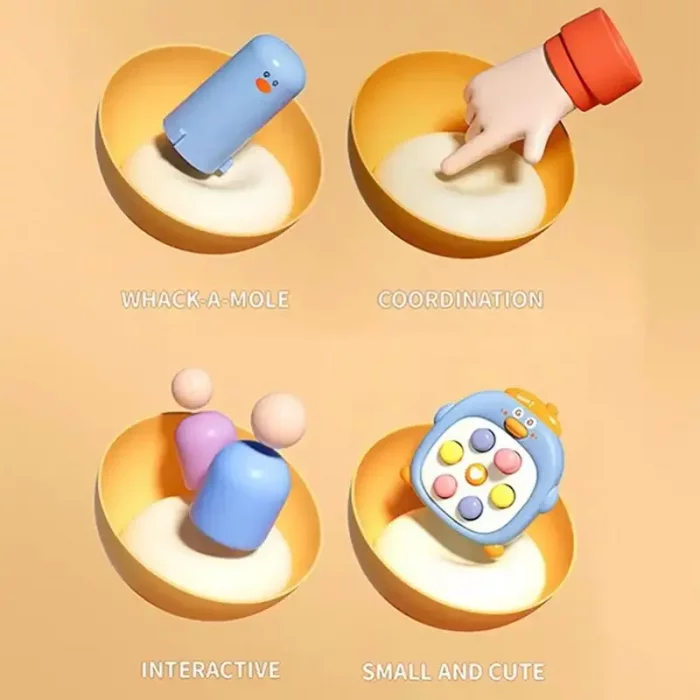 کودکان 18 ماه به بالا با فشار دادن دکمه هایی که روی این شکم این جوجه اردک قرار دارد به صورت رندوم دکمه های دیگر بیرون می آید و کودک باید بر اساس رعایت توالی دکمه ها را به درون فشار بدهند. مجموعه این اسباب بازی می تواند کودک را ساعت ها سرگرم کند.