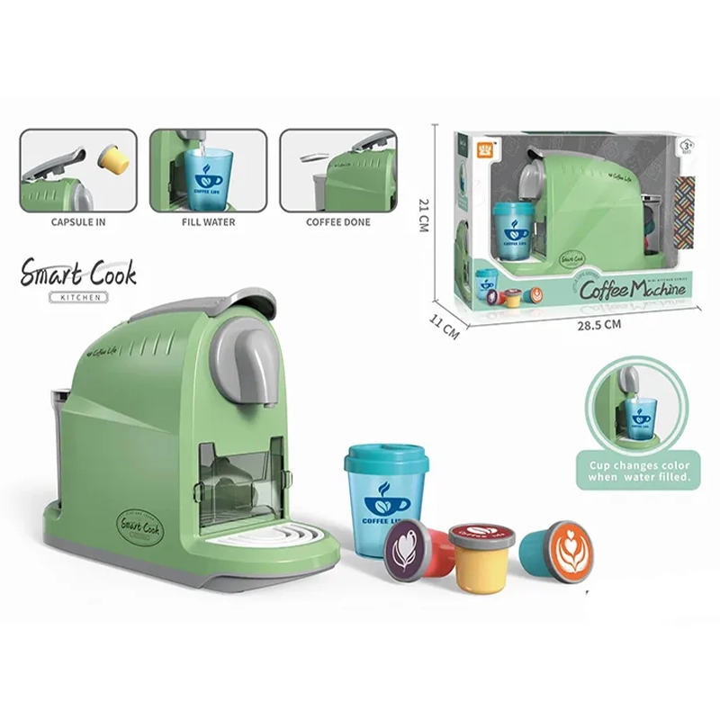 برای شروع یک صبح پر انرژی یا بعد از یک روز خسته کننده فقط یه فنجون قهوه میچسبه! نوشیدنی های گرم و خوشمزه را مانند یک باریستا حرفه ای در خانه تهیه کنید. تو دستگاه قهوه ساز آب بریز و منتظر قهوت باش. این قهوه ساز مشابه یک دستگاه واقعی در سایز کوچک می باشد. دارای صدا و نور بوده و در کنارش وسایل اسباب بازی مثل کاپ بیرون بر، 3 عدد کپسول است که برای کودکان 3 سال به بالا بسیار جذاب و دوست داشتنی خواهد بود. در کنار قهوه ساز را برداشته و داخل آن را آب بریزید، کپسول را درون دستگاه قرار دهید و دکمه آن را روشن کنید، نوشیدنی گرم خود را با فشار دادن یک دکمه آماده کنید. این اسباب بازی مناسب کودکان بالای 3 سال است و یک هدیه عالی تولد میباشد.