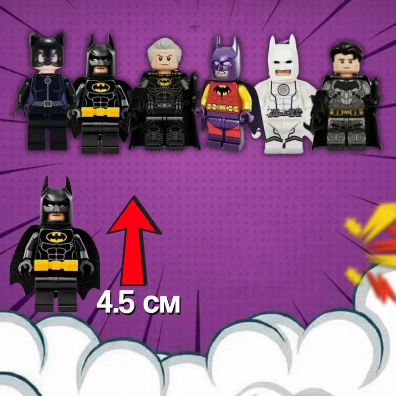 مینی فیگور لگو طرح بتمن شامل 6 مینی فیگور های لگویی جذاب از شخصیت بتمن برای بازی کودکان بالای 3 سال! شما این مینی فیگور ها را می توانید بر روی صفحه لگو کلاسیک نیز قرار دهید تا بتوانید بازی های بیشتری را با این مینی فیگور های لگویی انجام دهید. راستی شما از طرفداران شخصیت بتمن هستید؟ دست و پا و سر این مینی فیگور ها قابلیت حرکت دارند، هر مینی فیگور نیز یک سلاح به عنوان اکسسوری به همراه خود دارد.