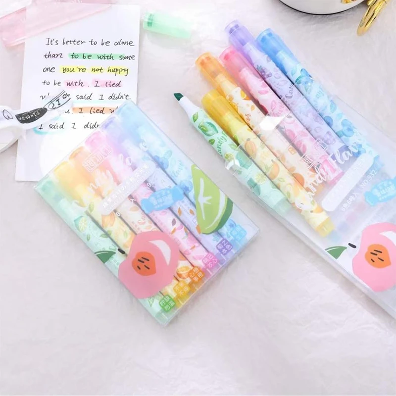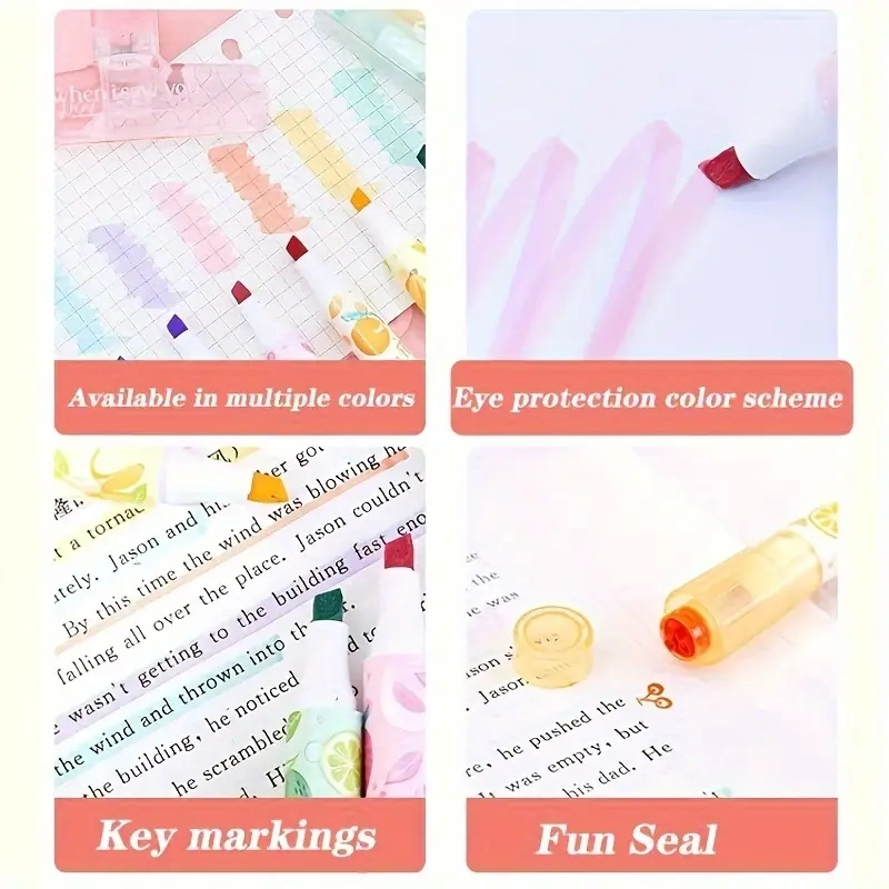 خرید لوازم تحریر کودک همیشه برای بچه ها و حتی بزرگتر ها جذاب بوده؛ همچنین با خرید لوازم تحریر زیبا می توان کودکان خود را به مدرسه رفتن و نوشتن و آموختن علاقمند کرد. این پک هایلایتر و مهر 6 عددی فانتزی طرح میوه دارای رایحه میوه و یک استامپ میوه است. رنگ های این هایلایترها با کیفیت بوده و پیگمنت قابل قبولی می باشد. هایلایتر فانتزی برای علامت زدن نکات مهم متنها به کار میرود و برای درست کردن ژورنال و یا برای علامت گذاری کارهای انجام شده در دفاتر برنامه ریزیتان و … مورد استفاده قرار میگیرد. علاوه بر دانش آموزان، برای بزرگسالانی که علاقمند به خرید لوازم تحریر هستند نیز جذابیت دارد. این هایلایتر برای کارهای روزانه مناسبه دارای بدنه پلاستیکی است و برای افرادی که به لوازم تحریر فانتزی علاقه دارند بسیار ایده آله.