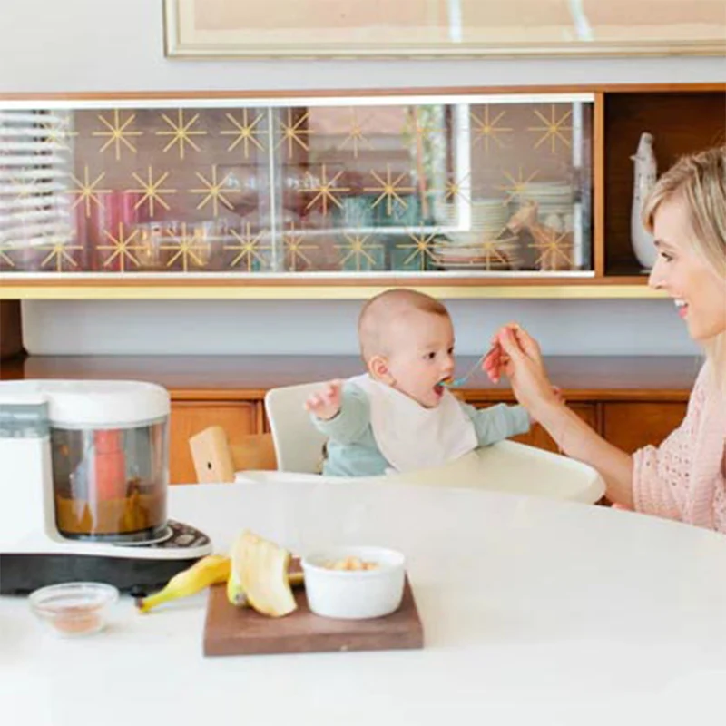 غذاساز کودک مدل One Step Deluxe بیبی برزا Baby Brezza به شما این امکان را میدهد که به راحتی و به سرعت غذای بچه خود را در منزل تهیه کنید. با فشار دادن یک دکمه، این دستگاه به طور خودکار غذا را بخار پز و مخلوط میکند، بدون نیاز به انتقال غذای داغ در کمتر از 10 دقیقه، میتوانید غذای بچه خود را در منزل تهیه کنید. همچنین، غذاساز کودک مدل One Step Deluxe بیبی برزا Baby Brezza یک سیستم کامل برای تهیه، نگهداری غذای بچه است. این دستگاه شامل 3 پاکت غذای قابل استفاده مجدد و قیف های پرکننده برای سرو و نگهداری غذا است. دارای ظرفیت 3.5 پیمانه است و استفاده از آن آسان و تمیز کردن آن نیز آسان است. دارای 3 تنظیمات (فقط بخار، فقط مخلوط یا بخار و مخلوط خودکار) و بدون BPA است. غذاساز کودک مدل One Step Deluxe بیبی برزا Baby Brezza برنده جایزه و از بهترین سازندگان غذایی سال 2018 توسط Huffington Post نامیده شده است و نامزد بهترین کمک فیدینگ در جوایز What To Expect در سال 2018 بوده است و برنده برترین سازنده غذای بچه توسط Baby Maternity Magazine است.