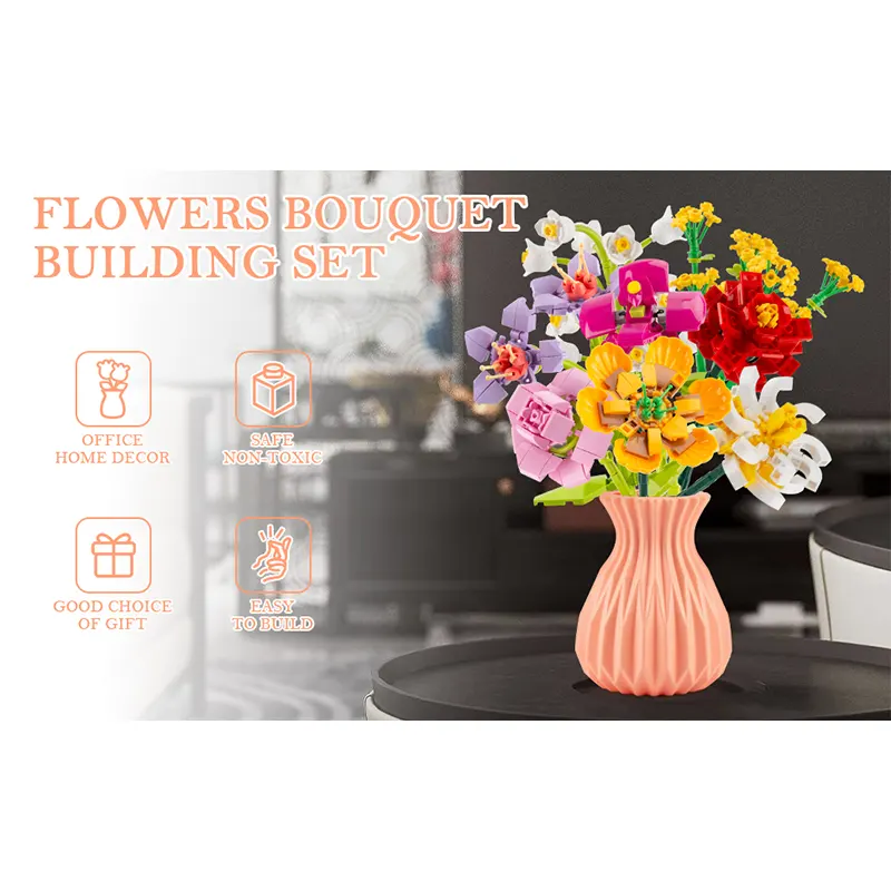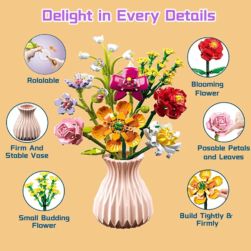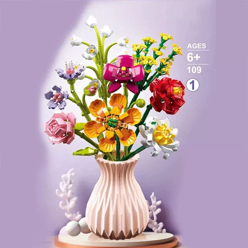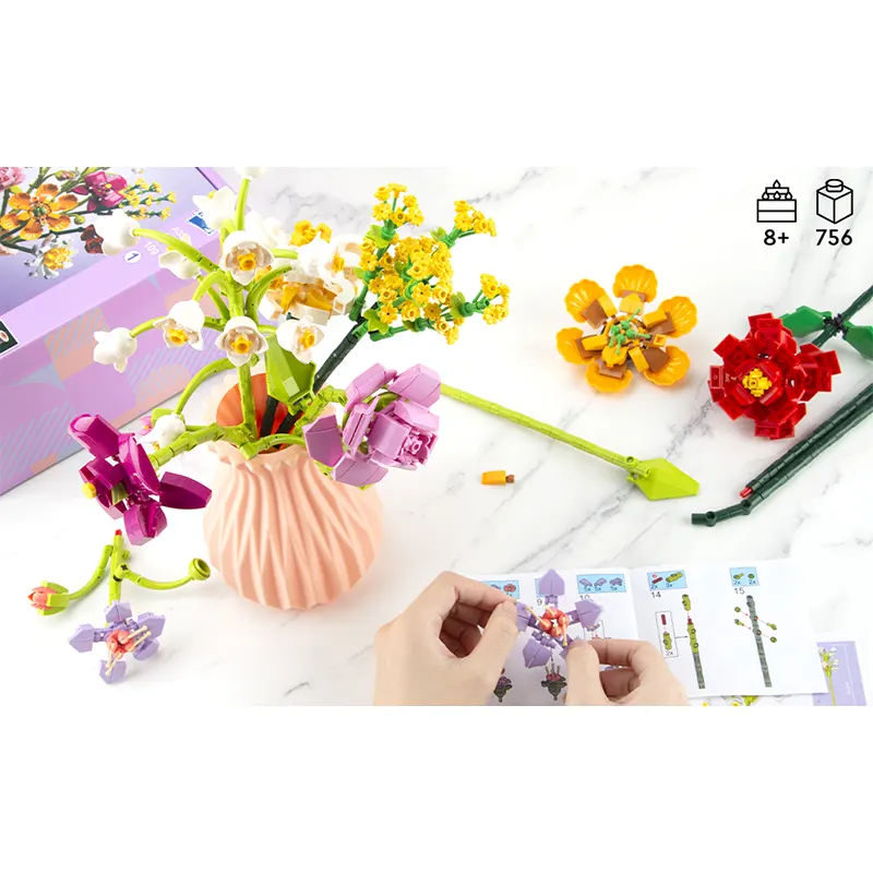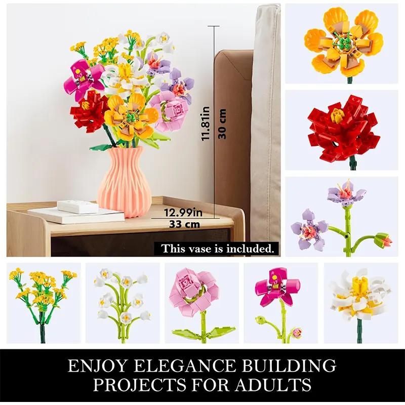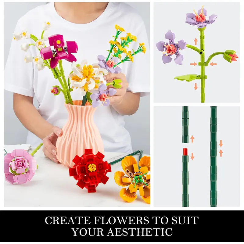 | محتویات بسته | گلدان، قطعات برای ساخت 8 شاخه گل لگویی |