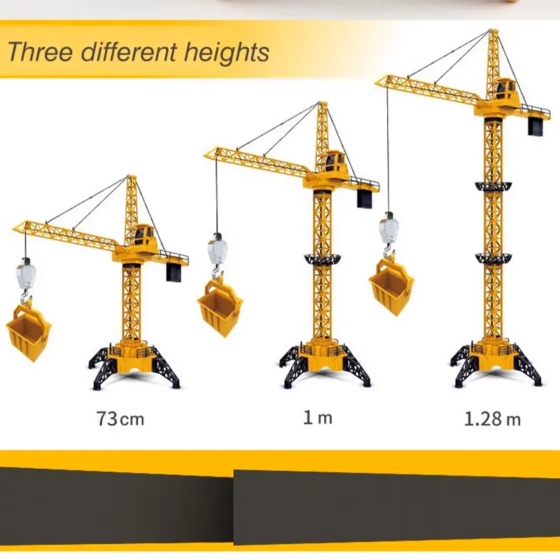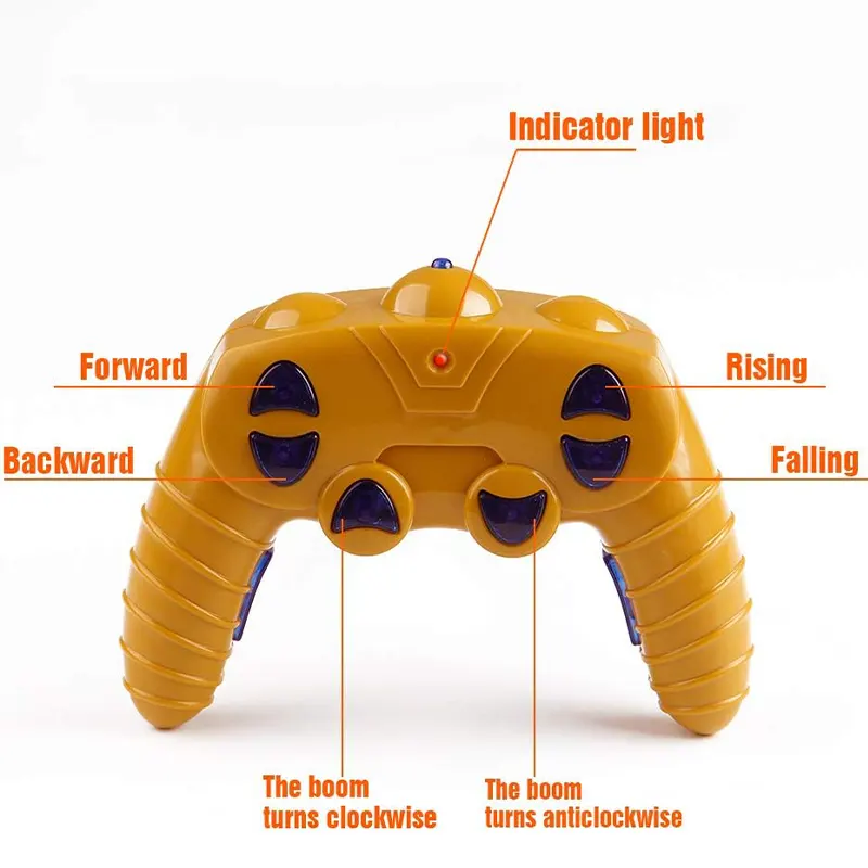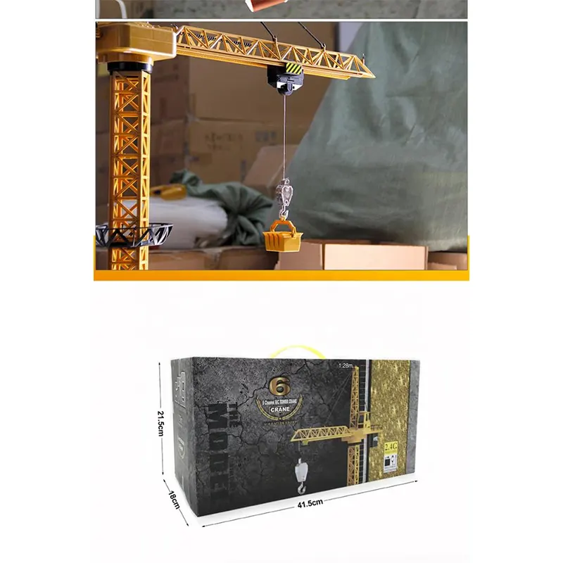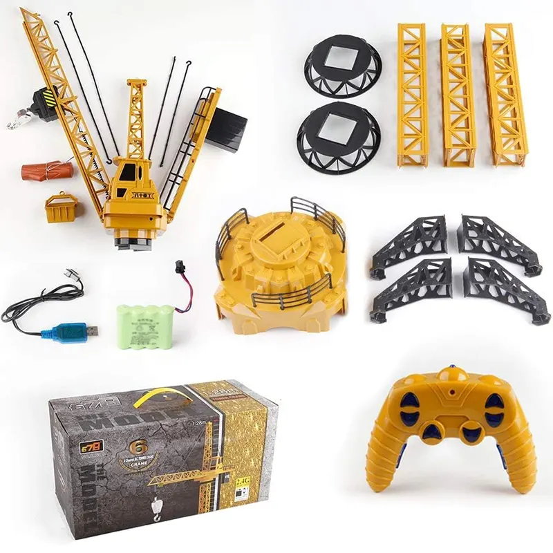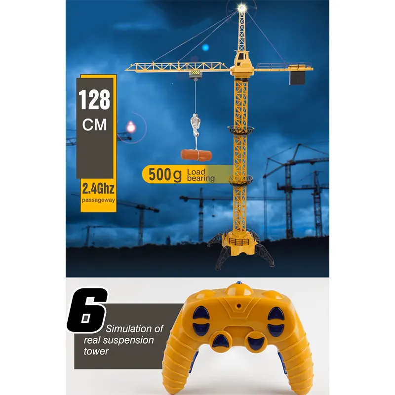 این جرثقیل دارای بدنه و پایه های ثابت است که روی زمین قرار می گیرد و قسمت کابین و قسمت بالای این جرثقیل قابلیت چرخش 360 درجه دارد . جرثقیل دارای قلاب بالا برنده می باشد که با کمک کنترل میتوان قلاب و جسمی که به آن آویزان است را به بالا و پایین، چپ و راست حرکت داد. کنترل جرثقیل اسباب بازی با استفاده از 2 عدد باطری 1.5 ولت قابل استفاده است. اسباب بازی جرثقیل برای کودکان عاشق ماشین آلات مهندسی یک انتخاب ایده آل است.