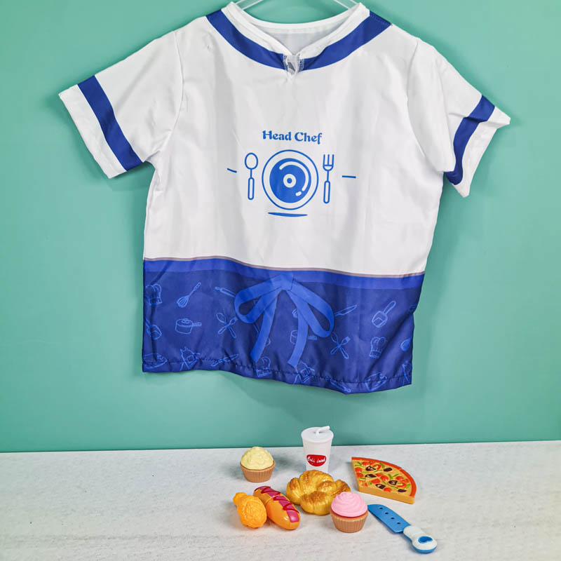 لباس مشاغل کودک مدل سرآشپز آبی با لوازم این ست شامل روپوش، کلاه و مواد غذایی مانند نان، پیتزا، ساندویچ، مرغ، نوشابه، کاپ کیک و... است و برای نقش بازی کودک بسیار سرگرم کننده است. کودک با پوشیدن انواع لباس مشاغل کودک در دنیای نقش بازی غرق می شود و از این طریق بسیاری از مهارت های زندگی را تمرین میکند. این لباس مشاغل کودک برای نقش بازی کودکان بسیار ایده ال است و بازی با آن موجب افزایش خلاقیت کودکان و آشنایی آنها با مشاغل مختلف می شود. این لباس مشاغل برای مهدکودک ها، خانه های مشاغل کودک و خانه بازی ها نیز فوق العاده است.