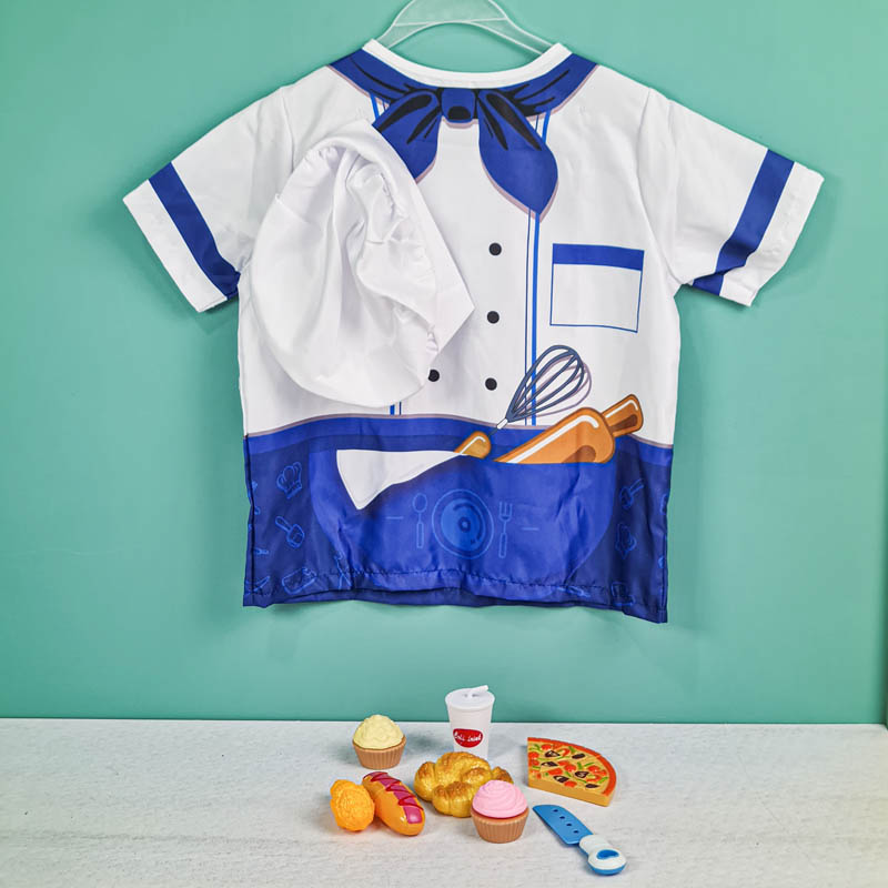 لباس مشاغل کودک مدل سرآشپز با لوازم یک ست شامل روپوش، کلاه و لوازمی مانند چاقو، مرغ، پیتزا و... است. این لباس مشاغل برای مهدکودک ها، خانه های مشاغل کودک و خانه بازی ها نیز فوق العاده است. موجب افزایش خلاقیت کودکان و آشنایی آنها با مشاغل مختلف میشود.