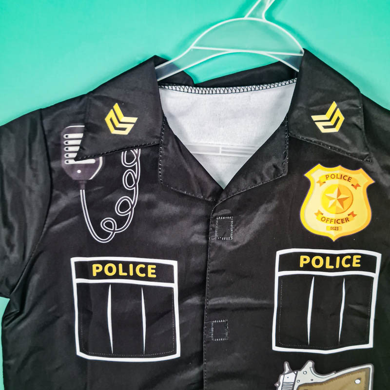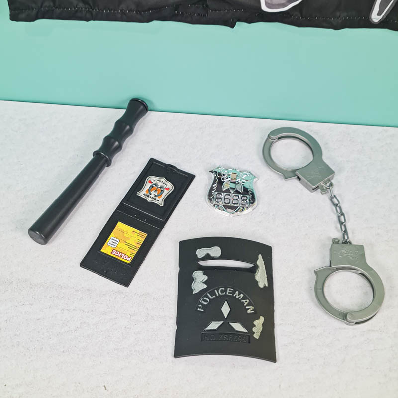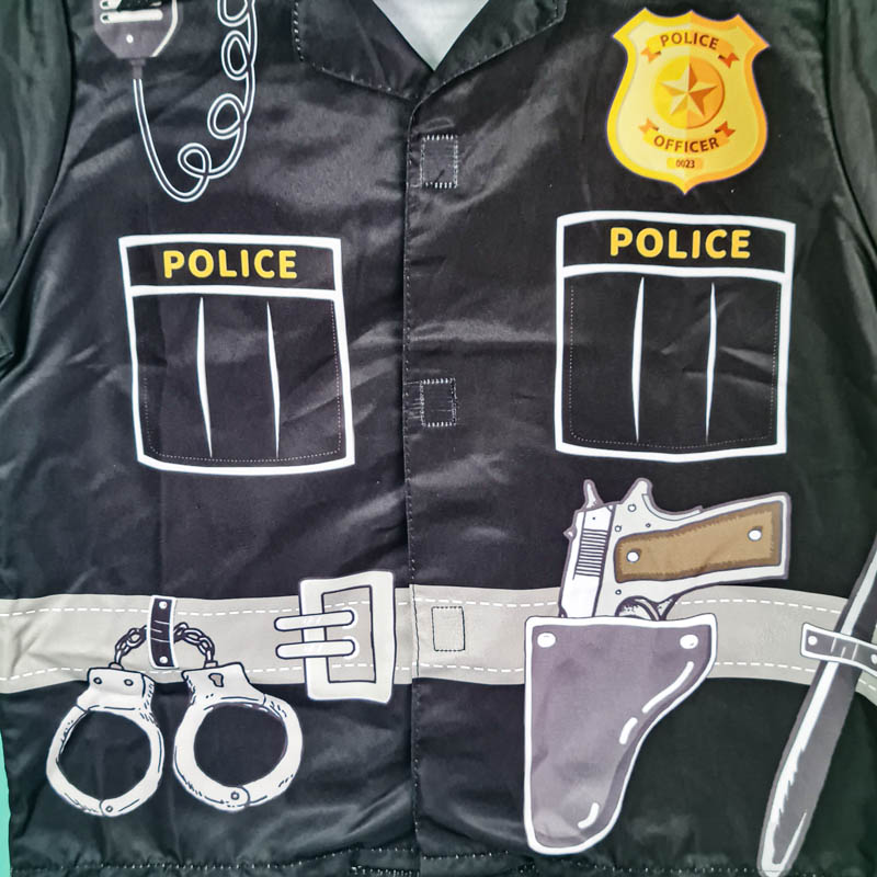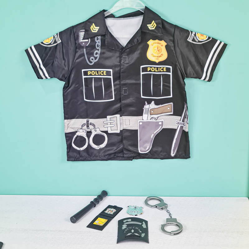 لباس مشاغل کودک مدل پلیس با لوازم یک ست شامل روپوش، باتوم، دستبند، مدال، کارت شناسایی و... است. این لباس مشاغل برای مهدکودک ها، خانه های مشاغل کودک و خانه بازی ها نیز فوق العاده است. موجب افزایش خلاقیت کودکان و آشنایی آنها با مشاغل مختلف میشود.
