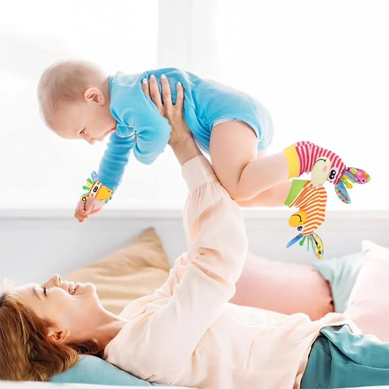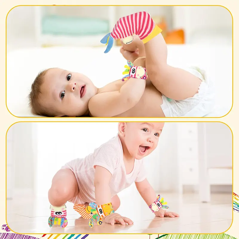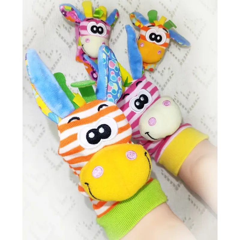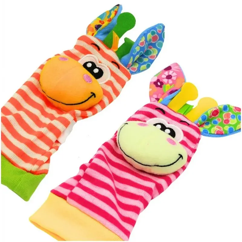 جوراب و مچ بند جغجغه ای کودک طرح حیوانات صورتی نارنجی