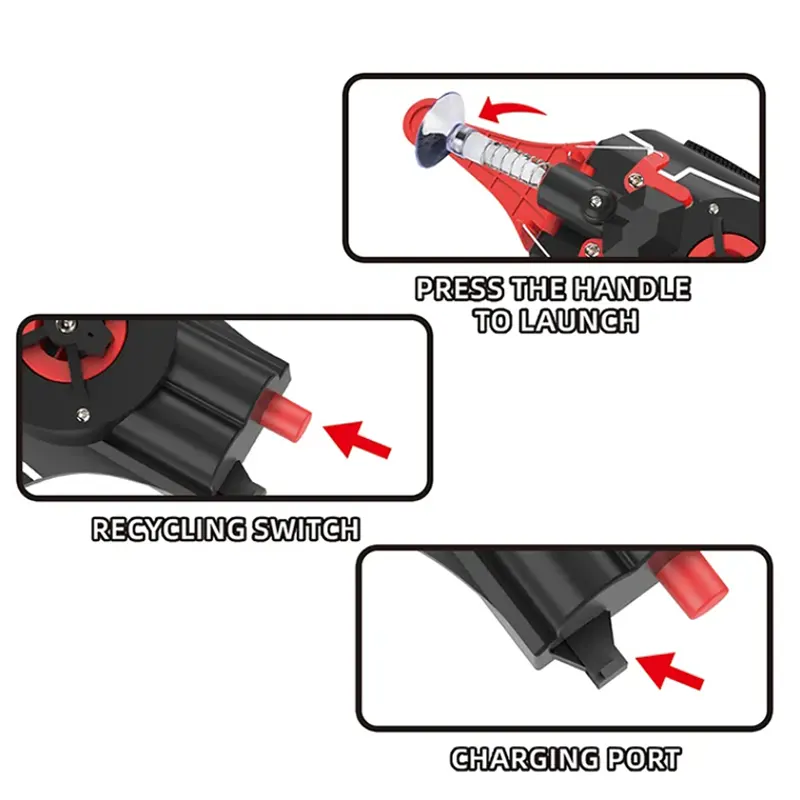 | اقلام همراه | دستکش، ماشین پرتاب تیر، کابل شارژ، 2 عدد مکنده |