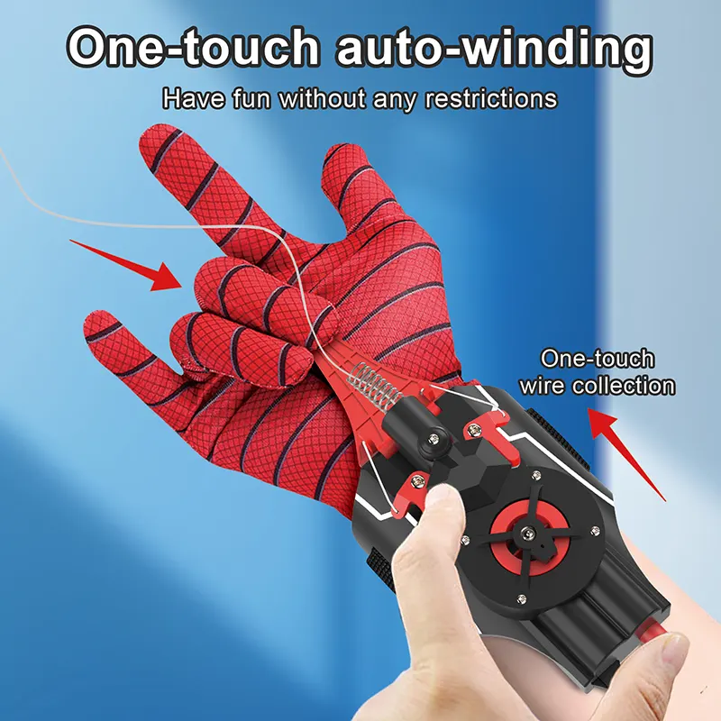 اسباببازی تار انداز مرد عنکبوتی، شامل دستکش، ماشین پرتاب تیر، کابل شارژ، 2 عدد مکنده می باشد. این دستکش به همراه دستگاه پرتاب تار که سر آن یک مکنده قرار میگیرد وجود دارد که با کمک بند دور دستگاه میتوانید آن را به دور مچ خود محکم ببندید. و با فشار دادن اهرم دستگاه مکنده را پرتاب کنید. دستکش رو دستتون کنید لانچر و بزنید و تار پرتاب کنید و کلی ماجراجویی هیجان انگیز داشته باشید.