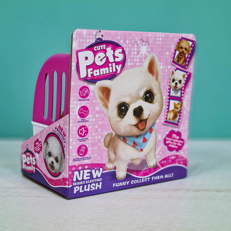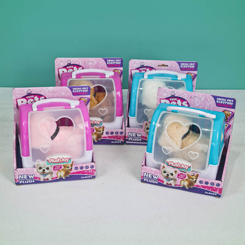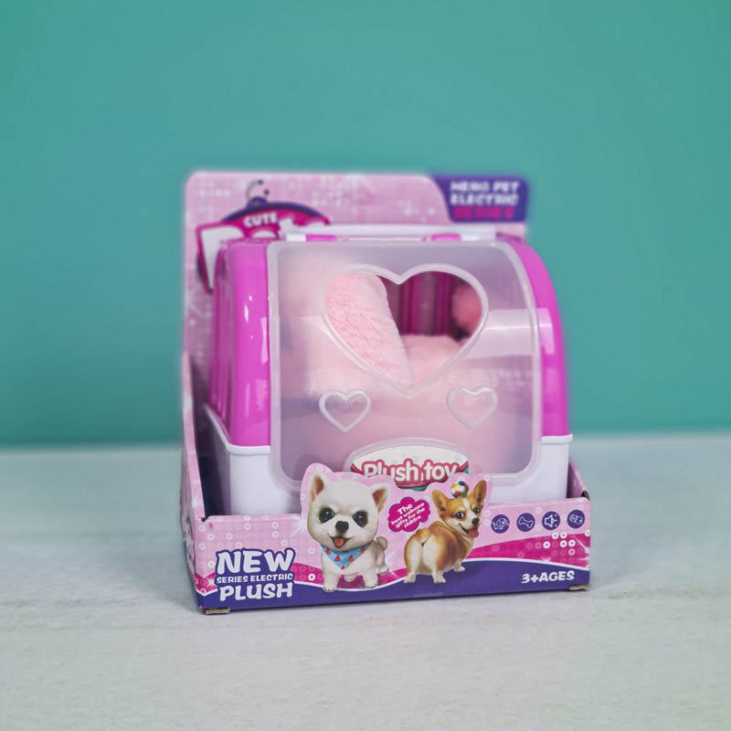عروسک پولیشی سگ رباتیک با قفس رنگ صورتی