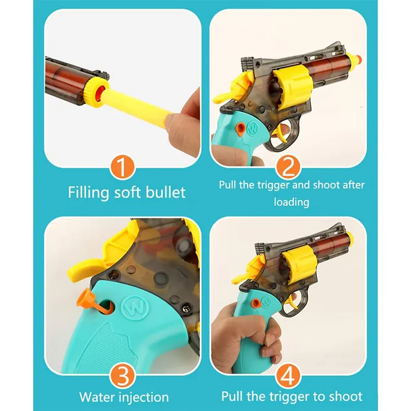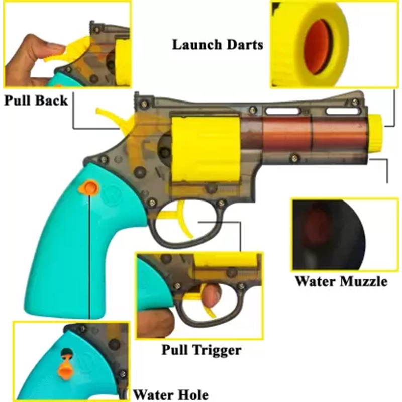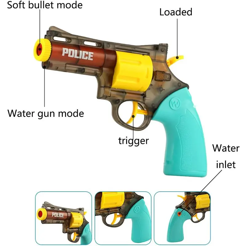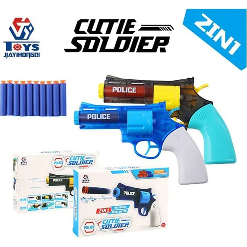 تفنگ اسباب بازی کودک 2 کاره به همراه 10 عدد تیر ژله ای برای هدف گیری و مخزن آب , کودک شما را به دنیای مهیج خیال و بازی می برد و ساعت ها او را سرگرم تفنگ بازی میکند