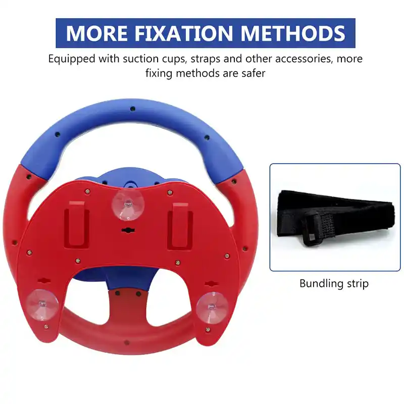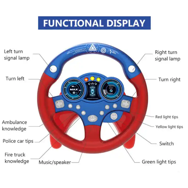 این فرمان موزیکال ساخته شده از مواد ABS، بی بو، قوی، ضد ضربه، بدون لبه یا گوشه تیز، کاملاً ایمن برای کودکان است. با فشردن دکمه استارت صدای استارت پخش می شود. فرمان هم قابلیت چرخش 360درجه به چپ و راست را دارد که با حرکت آن به چپ و راست راهنمای چپ و راست آن روشن میشود. روی فرمان دکمه ای برای بوق زدن همراه با افکت نور قرار دارد. دکمه های دیگر صدای آژیر ماشین ها و چراغ راهنمای چپ و راست نیز روی این فرمان قرار دارد. با این فرمان موزیکال کودک می تواند ساعت ها با آن سرگرم شود و لذت ببرد. این فرمان موزیکال یک اسباب بازی تعاملی یادگیری عالی برای بچه ها است این اسباب بازی توسط مکنده به پشتی صندلی وصل می شود و به 3 باتری قلمی نیاز دارد.