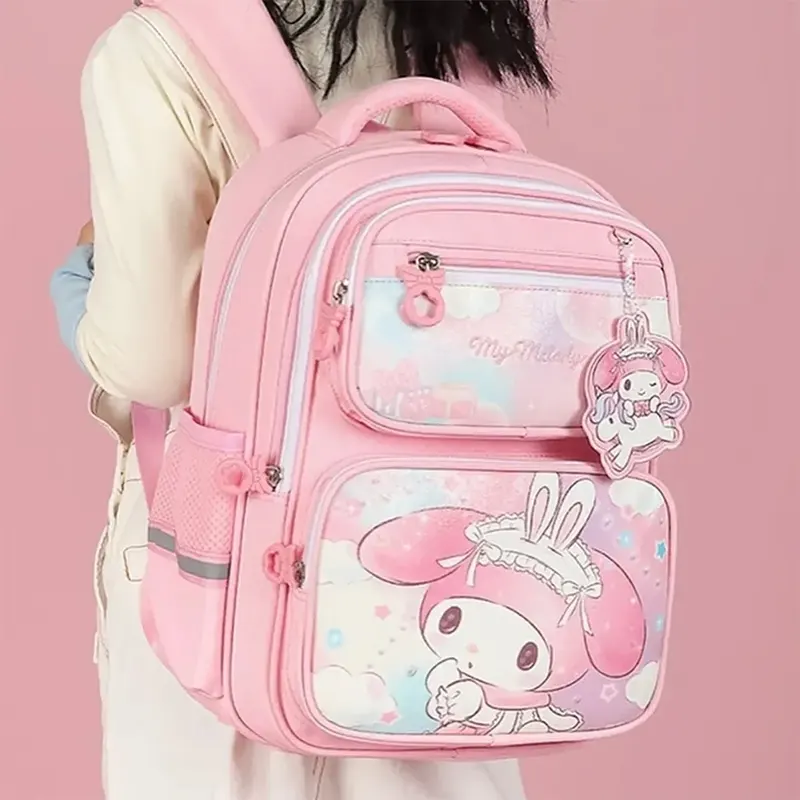 کوله پشتی مدرسه ای بسیار با کیفیت و جادار برای دانش آموزان! این کوله پشتی برای کودکانی طرفدار شخصیت کرومی و گروه سانریو هستند، نیز یک گزینه فوق العاده است. این کوله دارای 1 زیپ بسیار بزرگ و جادار و 3 زیپ کوچکتر برای قرار دادن لوازم مدرسه و کتاب ها دارد. همچنین 2 محفظه کناری برای قرار دادن قمقمه و... دارد. بند های این کوله قابل تنظیم با پد های نرم و استاندارد ضد تعریق می باشد.