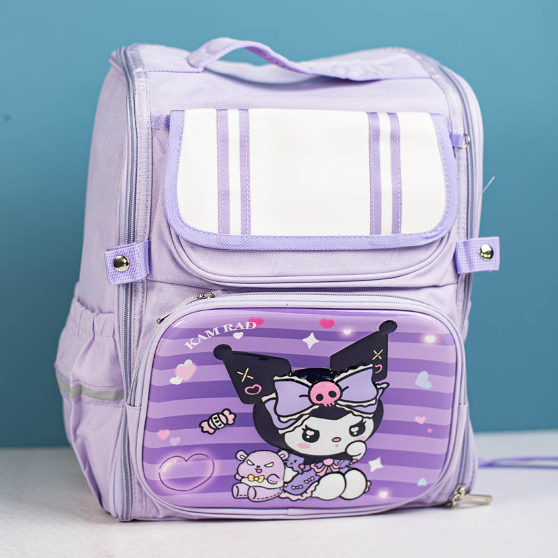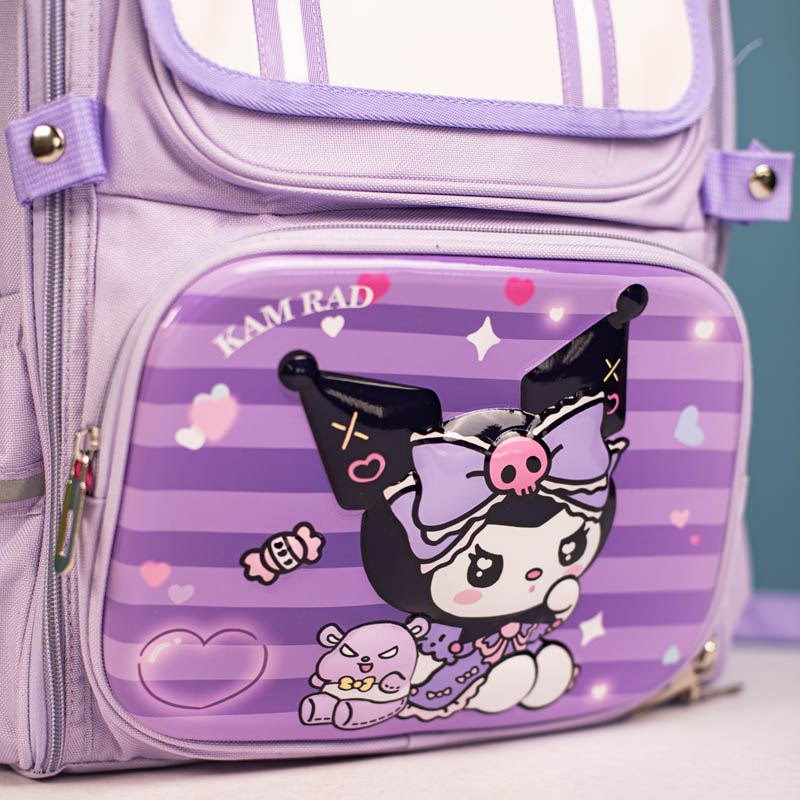 کوله پشتی مدرسه ای بسیار با کیفیت و جادار برای دانش آموزان! این کوله پشتی برای کودکانی طرفدار شخصیت کرومی و گروه سانریو هستند، نیز یک گزینه فوق العاده است. این کوله دارای 1 زیپ بسیار بزرگ و جادار و 2 زیپ کوچکتر برای قرار دادن لوازم مدرسه و کتاب ها دارد. همچنین 2 محفظه کناری برای قرار دادن قمقمه دارد. بند های این کوله قابل تنظیم با پد های نرم و استاندارد ضد تعریق می باشد.