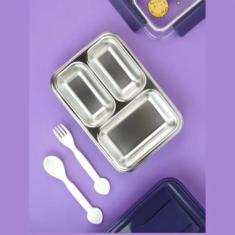 لانچ باکس کودک ایده آل برای قرار دادن و نگهداری انواع خوراکی ها و غذاها. با این لانچ باکس 3 قسمته می توانید هر یک از خوراکی ها را در یک قسمت قرار دهید و وعده غذایی خود را کامل کنید. این لانچ باکس با داشتن واشر و ظرف از جنس استیل (SUS304) کاملا ضد نشت و دارای قابلیت حفظ دما و طعم غذا تا چند ساعت است. همچنین بدنه این لانچ یاکس یا ظرف غذای دو جداره از پلاستیک PP ( پلی پروپیلن ) می باشد. این لانچ باکس کودک دارای قاشق و چنگال پلاستیکی نیز می باشد. لانچ باکس زیبا و کاربردی قابل استفاده برای کودک و بزرگسالان قابل استفاده است. تمام 3 قسمت این ظرف غذا در قسمت درب دارای واشر می باشد که از مخلوط شدن و نشتی غذا کاملا جلوگیری می کند. این لانچ باکس جادار حدود حجم 700 میلی لیتر گنجایش دارد. در محفظه زیرین این لانچ باکس می توانید آب داغ بریزید تا بعد از چند دقیقه غذای شما گرم شود و میل کنید.
